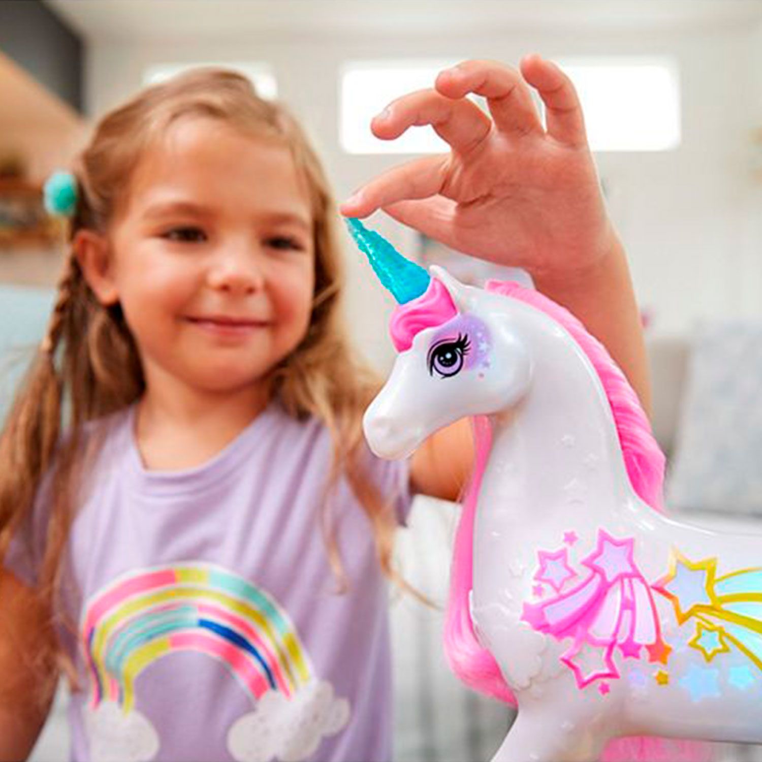 Добавьте блеска и мерцания в вашу игру с помощью волшебного Сверкающего Единорога Barbie.