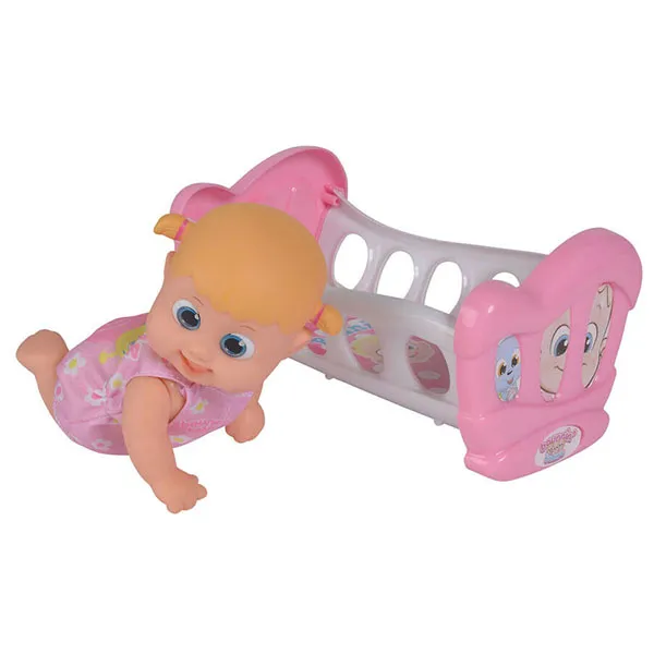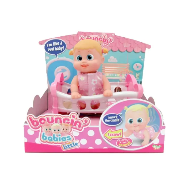 - подвижная голова, руки и ноги- чтобы увидеть, как куколка ползает под музыку и качается в кроватке, необходимо вставить в отверстие на спине куклы батарейку и включить маленький переключатель