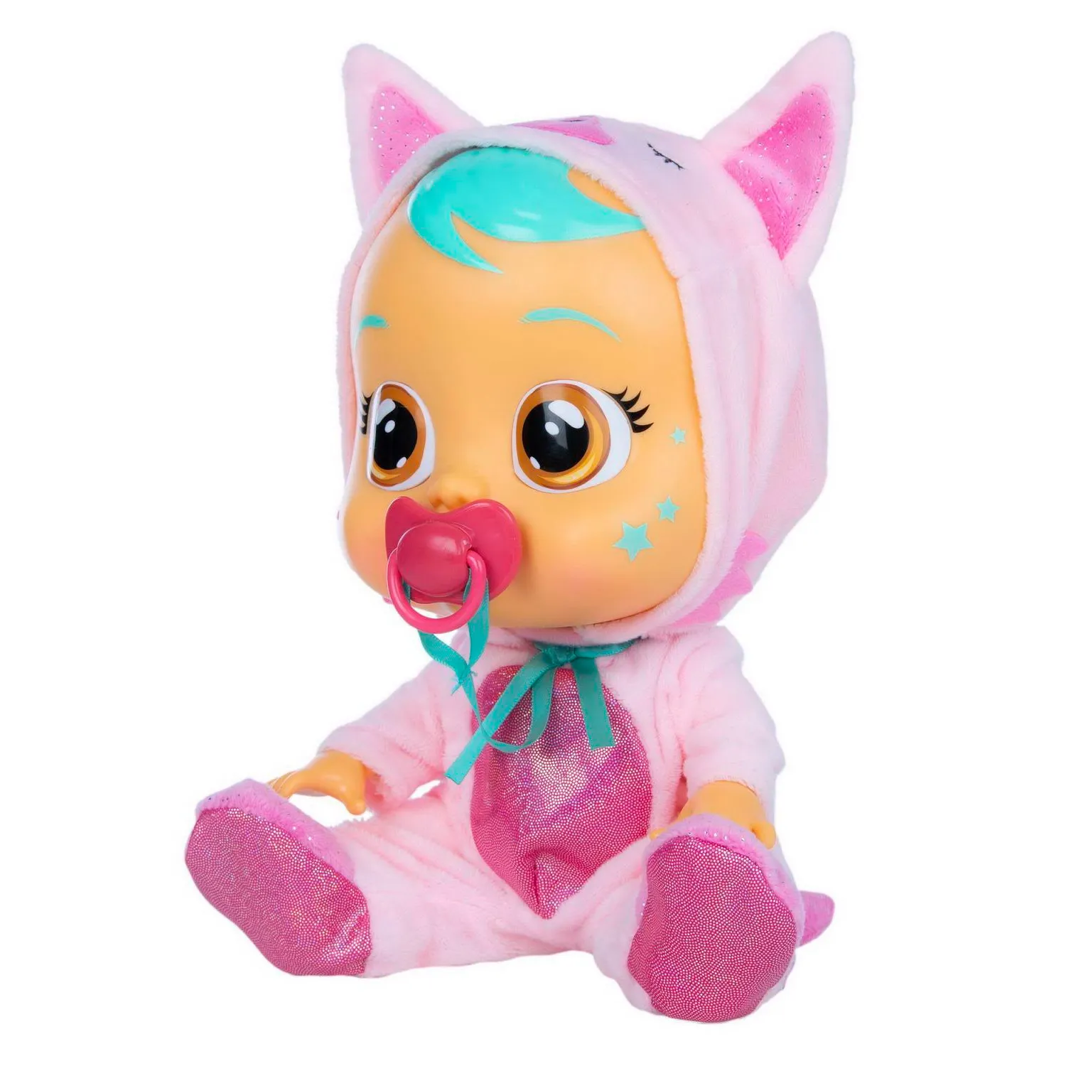 - плачет настоящими слезами, просто заберите у куклы пустышку и она начнет плакать, совсем, как настоящий ребенок.