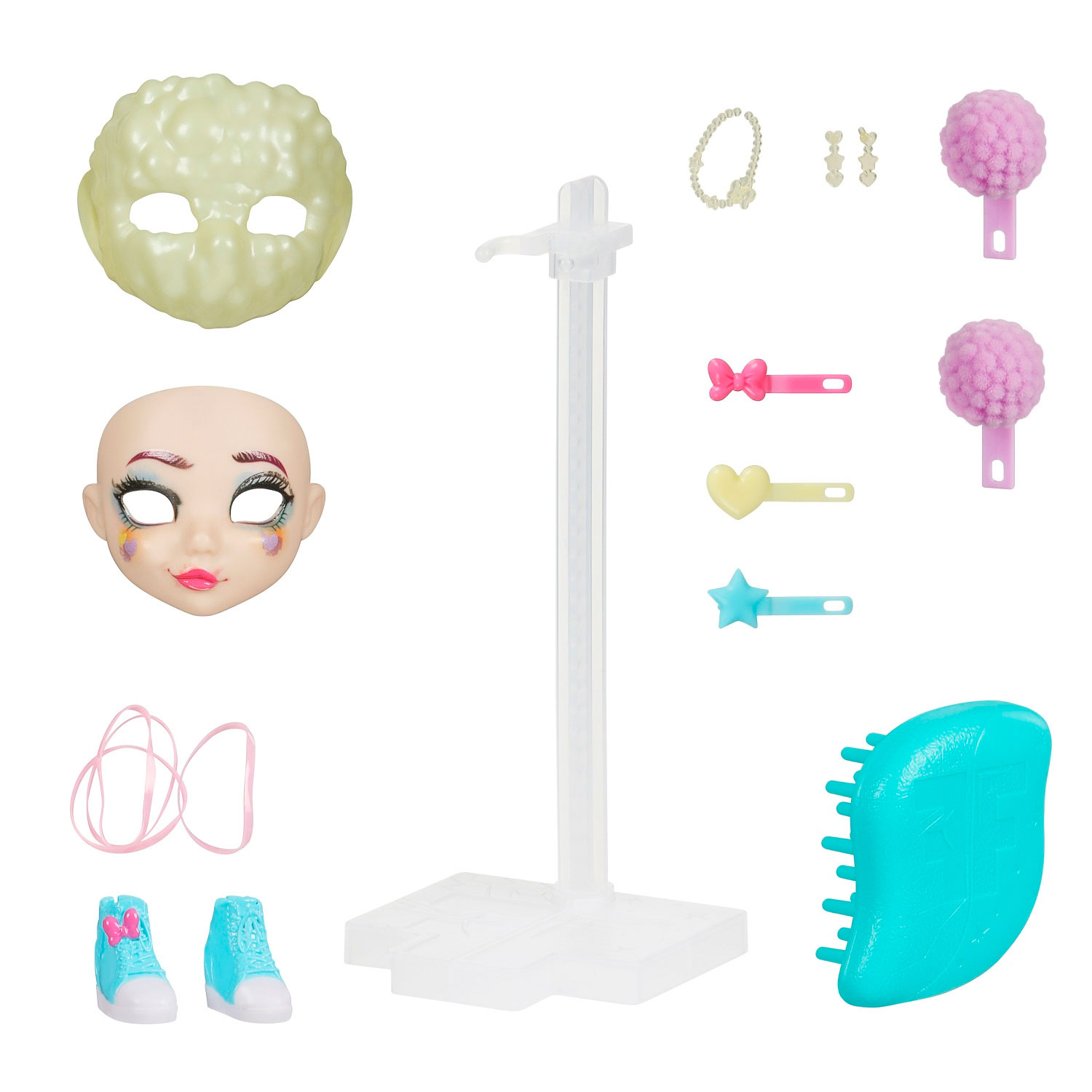 • кукла с шарнирными деталями туловища, съемным лицом и прошитыми настоящими волосами