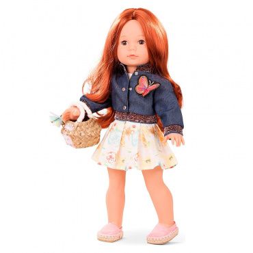 - кукла представляет собой малышку с длинными рыжими волосами, которые спускаются ниже ее плеч, глазами карего цвета, аккуратно сложенными губками и маленьким носиком