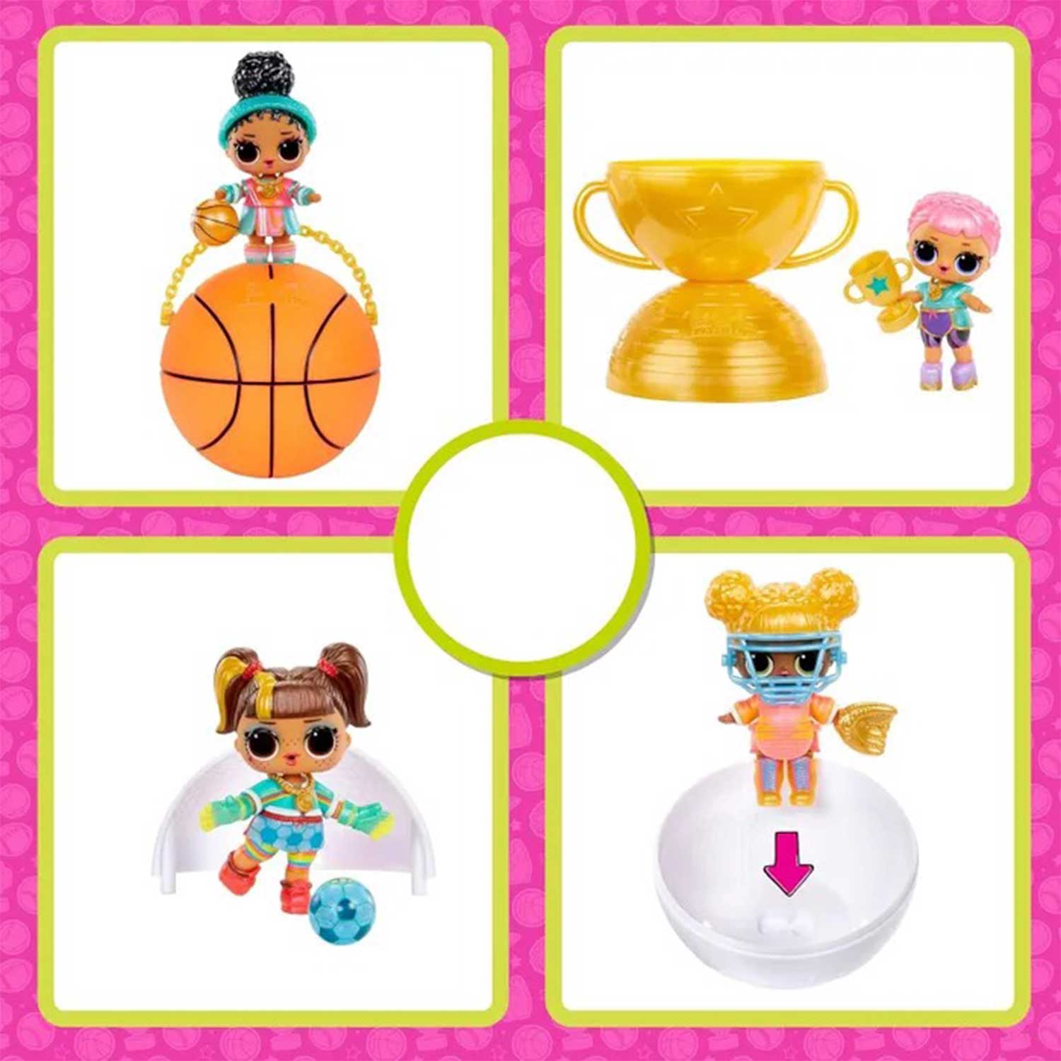 LOL Surprise All Star Sports — это коллекционная серия кукол, посвящённая миру спорта. Каждая кукла представляет собой яркого персонажа в спортивной экипировке, вдохновлённой популярными видами спорта: футбол, баскетбол, бейсбол и другие. Игрушка идеально подходит для детей, которые любят активные игры и коллекционирование, а также станет отличным подарком для фанатов LOL Surprise.