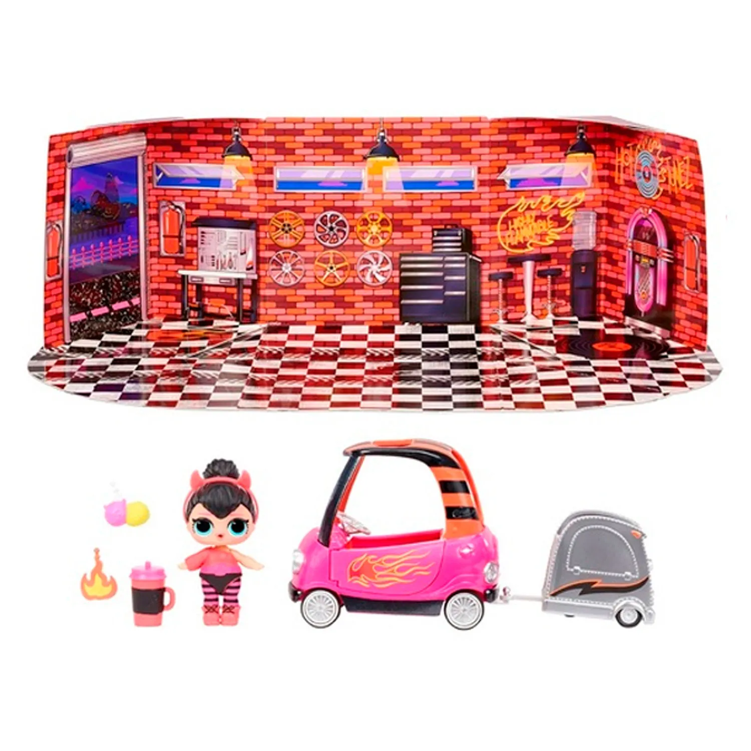 - игровой набор c куколкой Спайс, автомобилем с прицепом и аксессуарами, которые можно расположить на импровизированной игровой зоне автомагазине