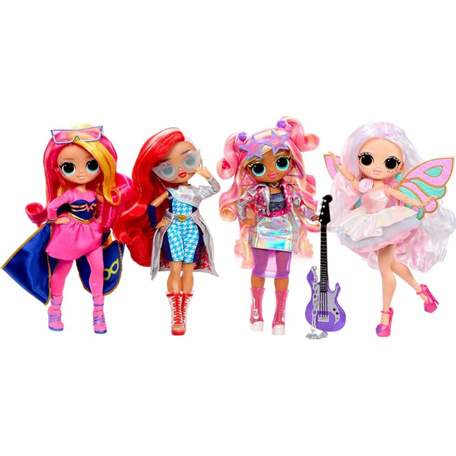 - собери все 4 куклы LOL Surprise OMG Eye Spy (шпион, супергерой, фея, рок-звезда)