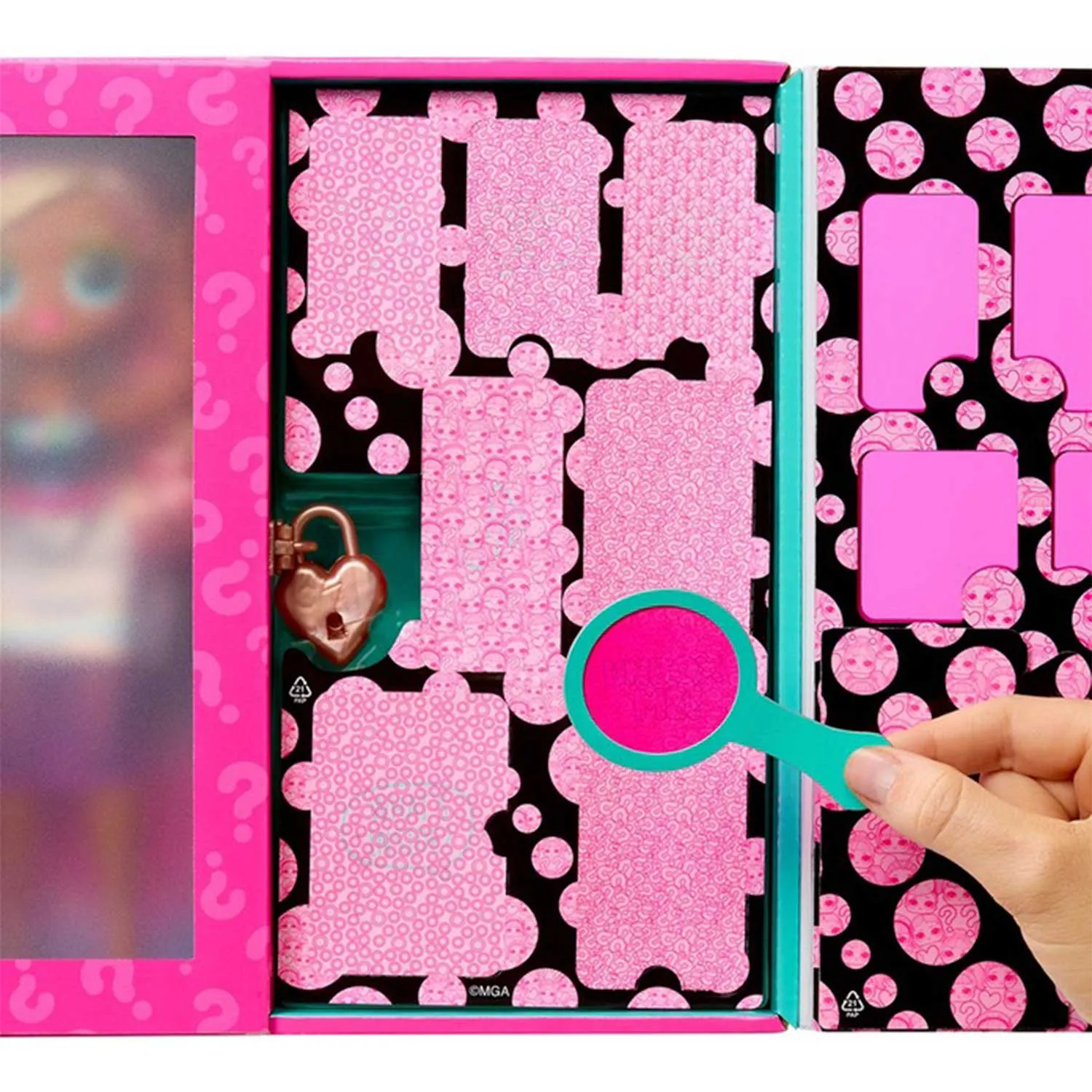 - интерактивное распаковочное шоу: интерактивная упаковка с подсказками, которые нужно разгадать, чтобы открыть свою модную куклу L.O.L. Surprise O.M.G. Eye Spy
