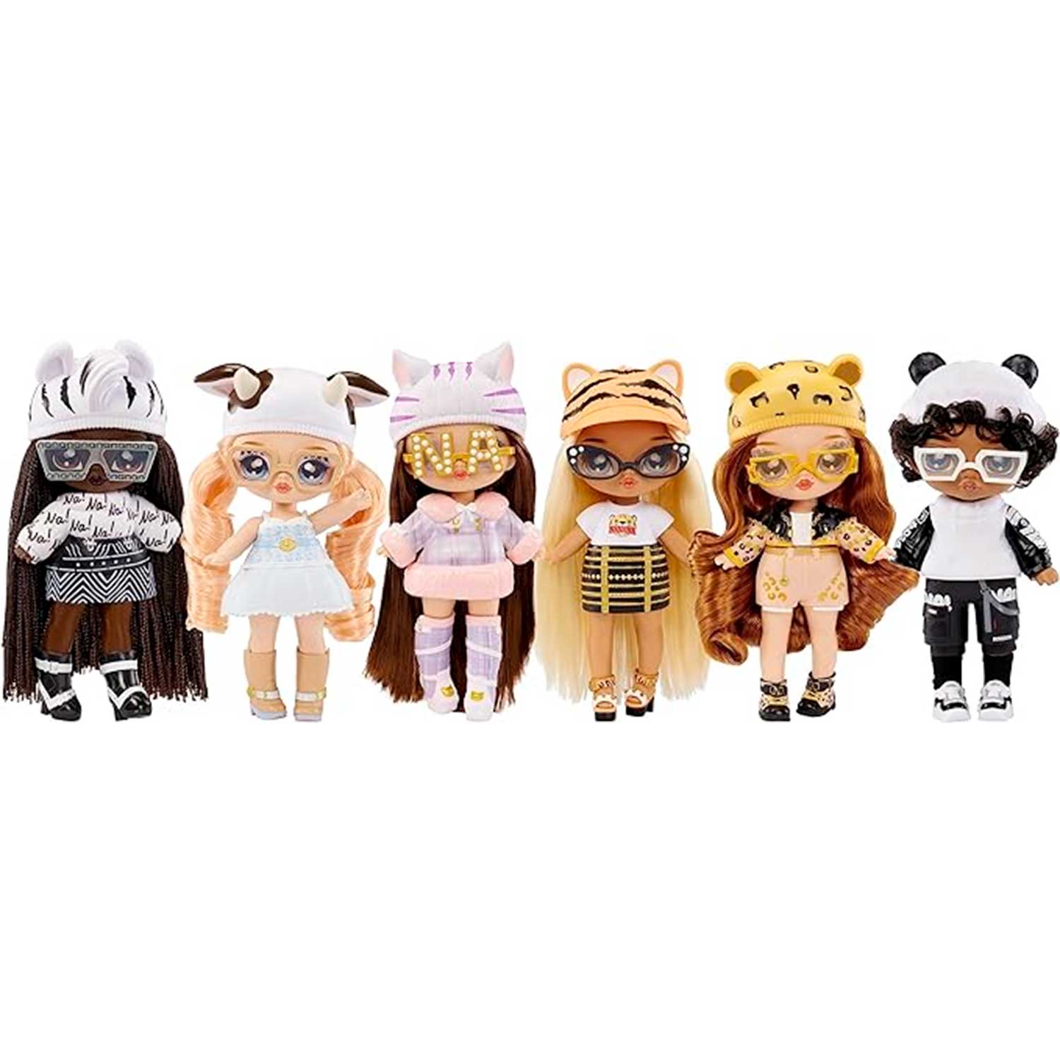 В коллекции Na! Na! Na! Fazzy Surprise 6 очаровательных пластиковых кукол высотой около 18 см, у каждой куклы 3 разных образа: пушистый костюм, и два комплекта нарядов.
