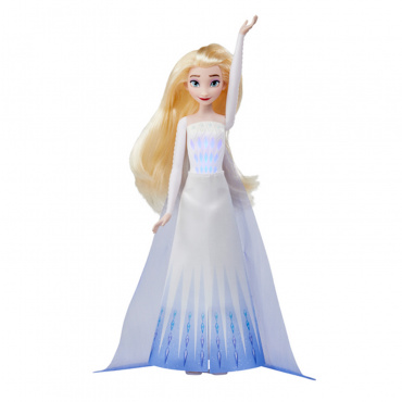 - поднимите руку Эльзы, и вы услышите музыкальный фрагмент песни “Вновь за горизонт” из мультфильма “Холодное сердце 2”, а бриллиантовые огоньки будут мерцать в такт