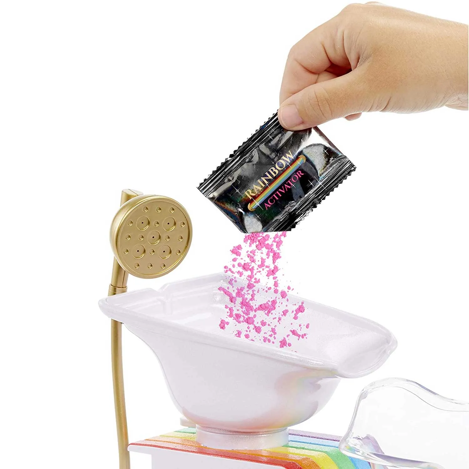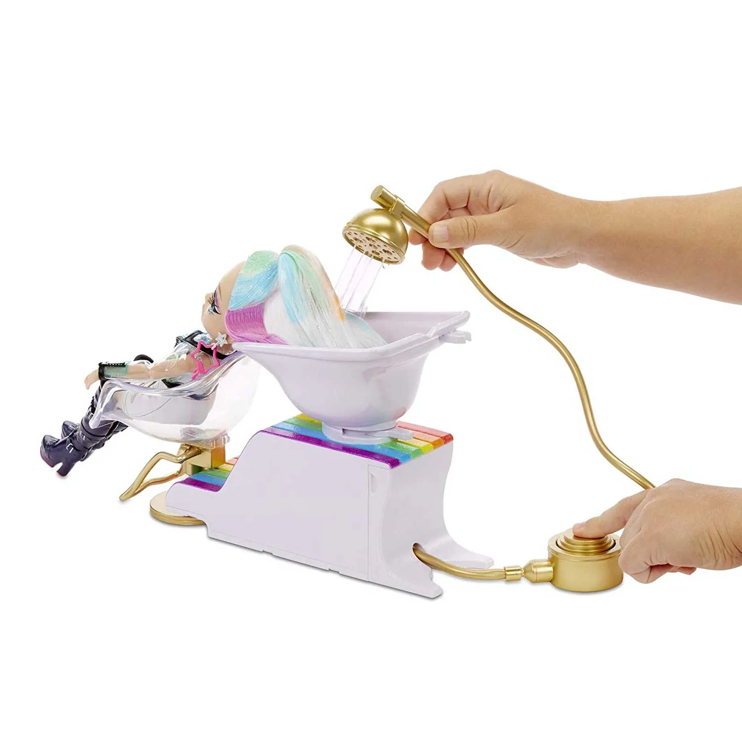 Создайте красивые радужные волосы с цветной пеной для волос в игровом наборе Rainbow High Salon.
