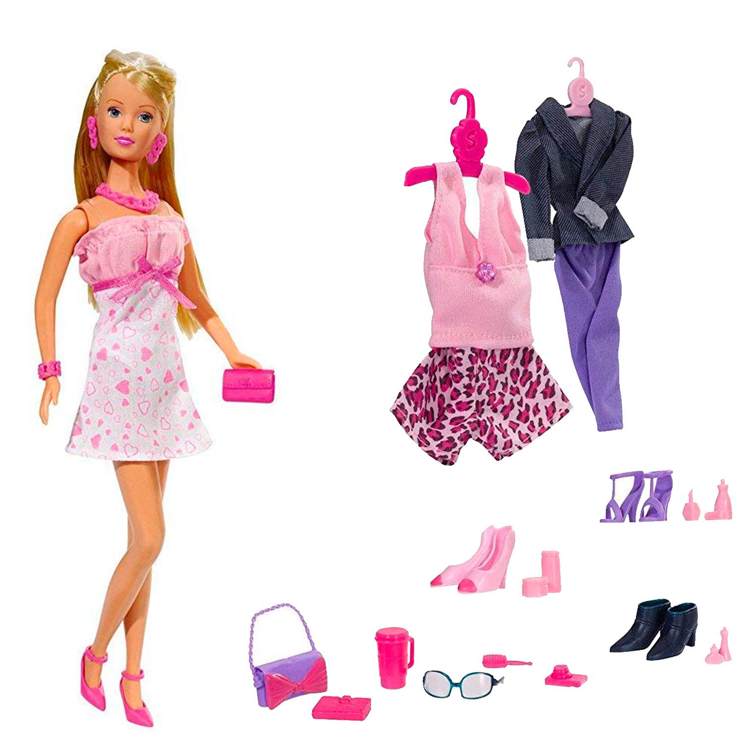 - длинные блестящие волосы Штеффи легко причесываются, позволяя делать кукле прически
