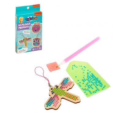 - набор позволяет создать 3 деревянных брелока для девочек, украшенных переливающимися стразами
