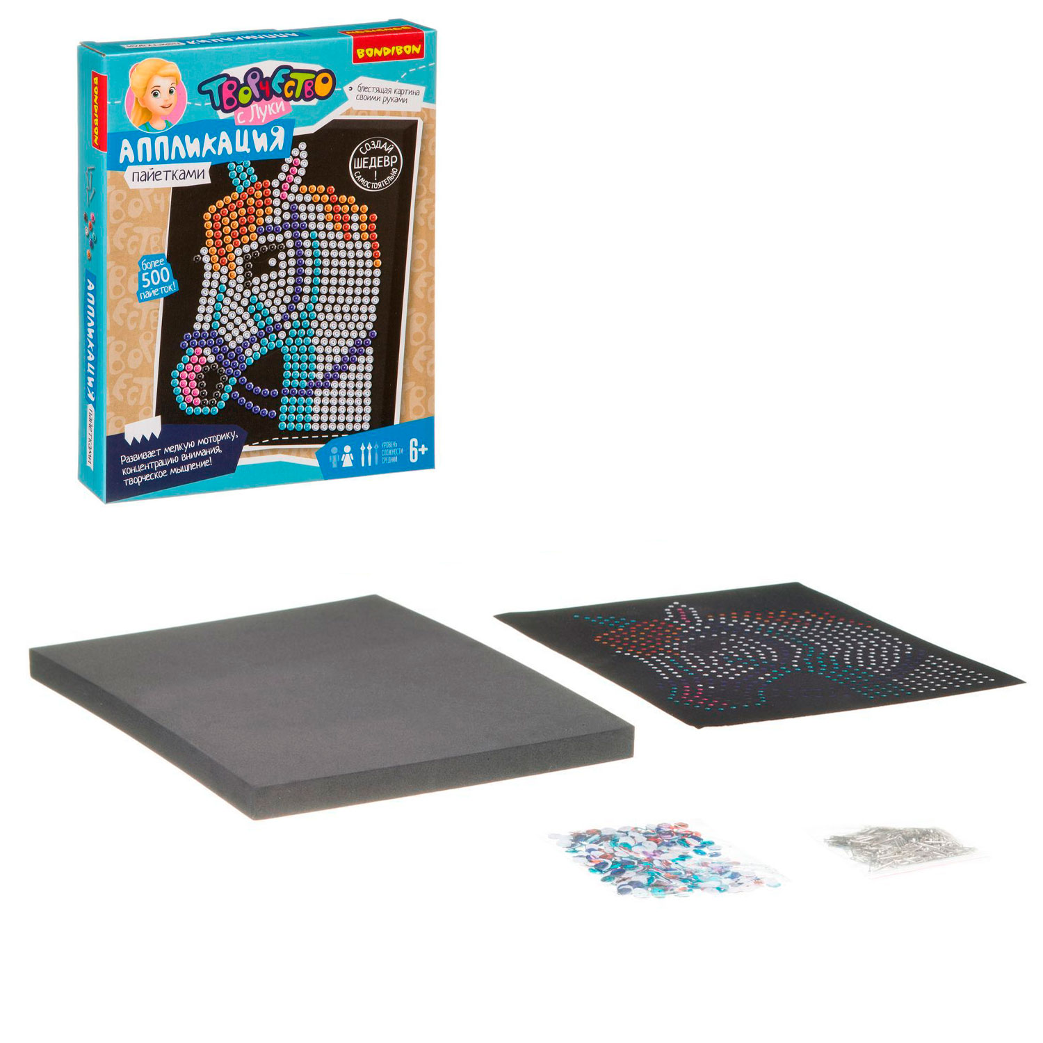 ВВ3814 Набор для творчества Bondibon. Аппликация пайетками. Лошадь 6+