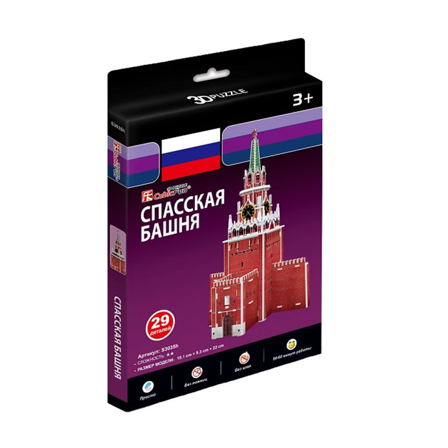 Этот необычный конструктор-головоломка от Cubic Fun позволит юному архитектору собственными руками соорудить знаменитый символ Москвы и России – Спасскую башню, которая является главной из 20 башен московского кремля.