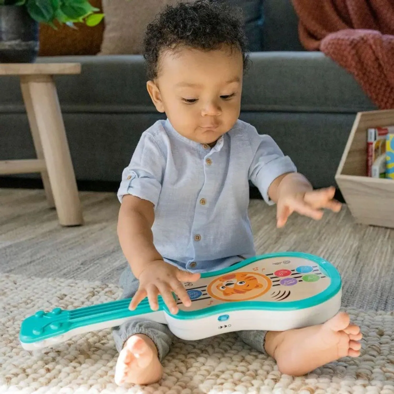 Музыкальная развивающая игрушка "Гавайская гитара" серия Волшебное прикосновение от бренда Hape - это игрушка для малышей от 6-ти месяцев , которая помогает представить причинно-следственную связь и способствует развитию моторики, поскольку малыши открывают для себя чудо музыкального творчества.