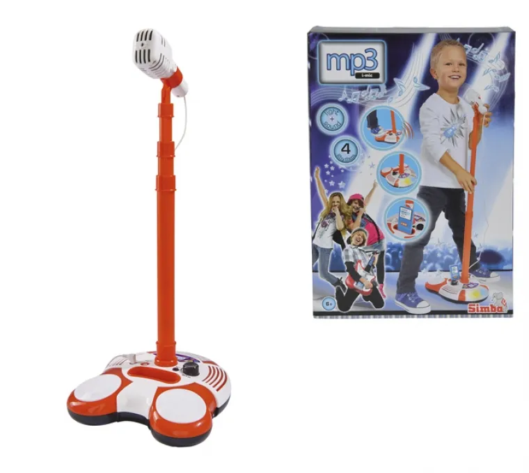 С детским микрофоном на стойке караоке в домашних условиях организовать проще простого! Изделие от торговой марки Simba представляет собой многофункциональный атрибут с регулируемой стойкой; именно поэтому петь в микрофон с максимальным комфортом смогут дети разных возрастов.