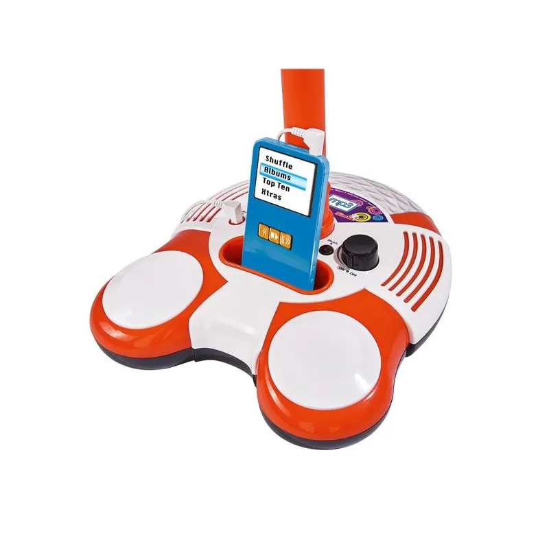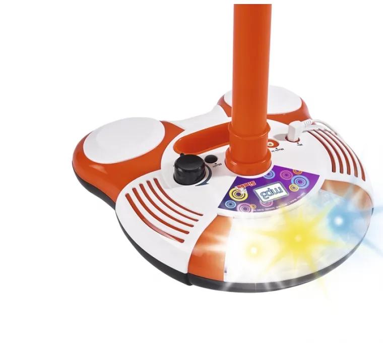 Микрофон оснащен световыми эффектами, которые создают впечатление праздника и добавляют веселья забаве. Кроме того, ребенок сможет спеть любую из своих любимых песен, ведь установка совместима с Mp3-плеером и может считывать музыкальные произведения.