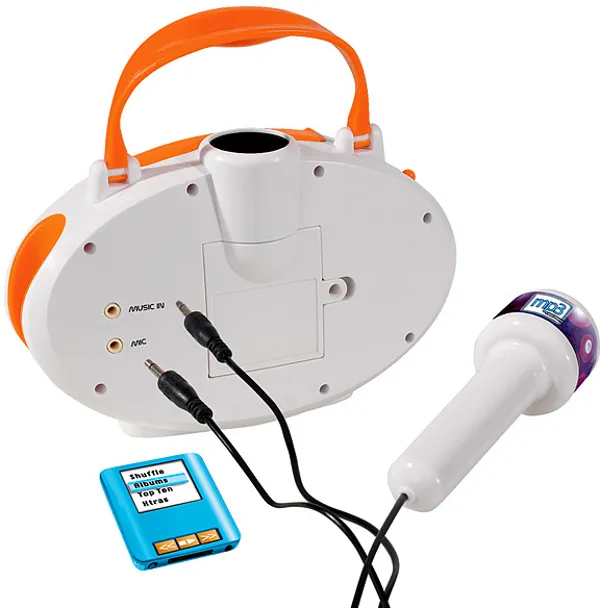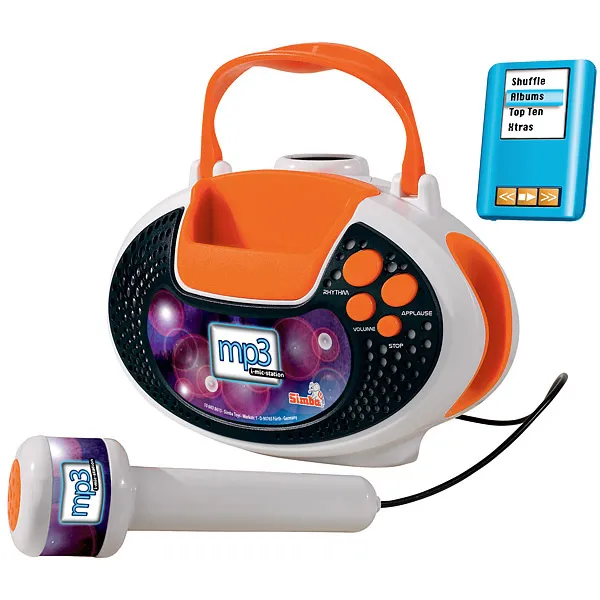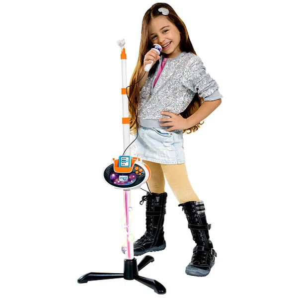 Незабываемое шоу-представление не обойдётся без красивого микрофона, зажигательных песен и громких аплодисментов. Всё это объединяет в себе музыкальный набор, в котором есть стойка с микрофоном и съёмная база в виде DVD-проигрывателя. На базе расположены четыре яркие кнопки: громкость, демо-мелодии, апплодисменты и кнопка выключения. К проигрывателю можно подключить MP3-плеер, с которым так удобно слушать и петь свои собственные песни. Ещё в игрушке есть записи нескольких демо-мелодий, которые последовательно включаются с одной кнопки. Высота стойки микрофона может регулироваться, максимальная длина - 109 см.