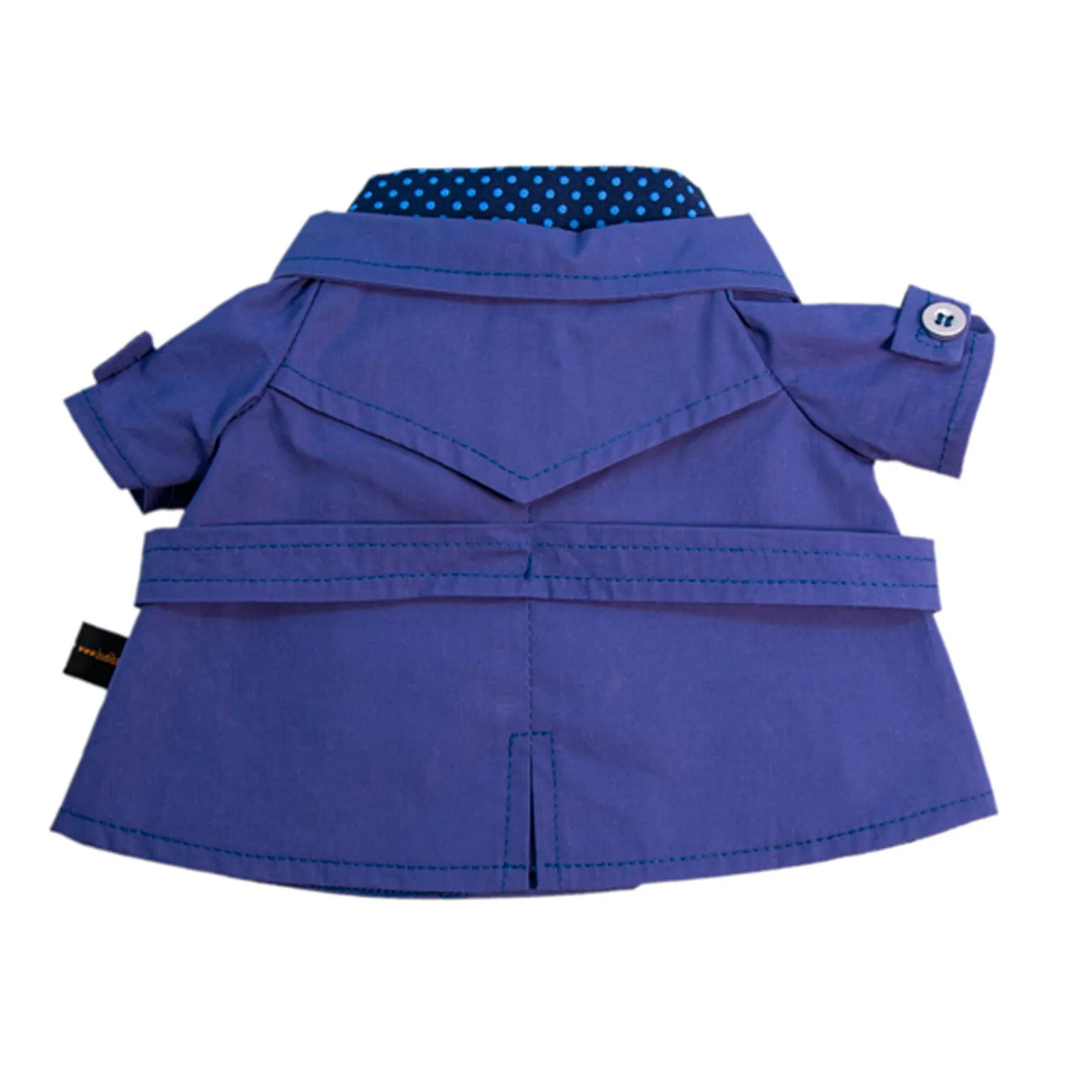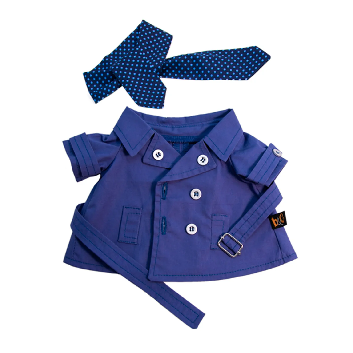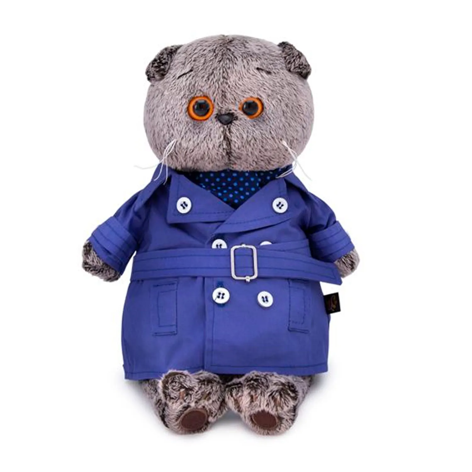 Пополните гардероб Басика темно-синим двубортным плащом и галстуком в горошек.