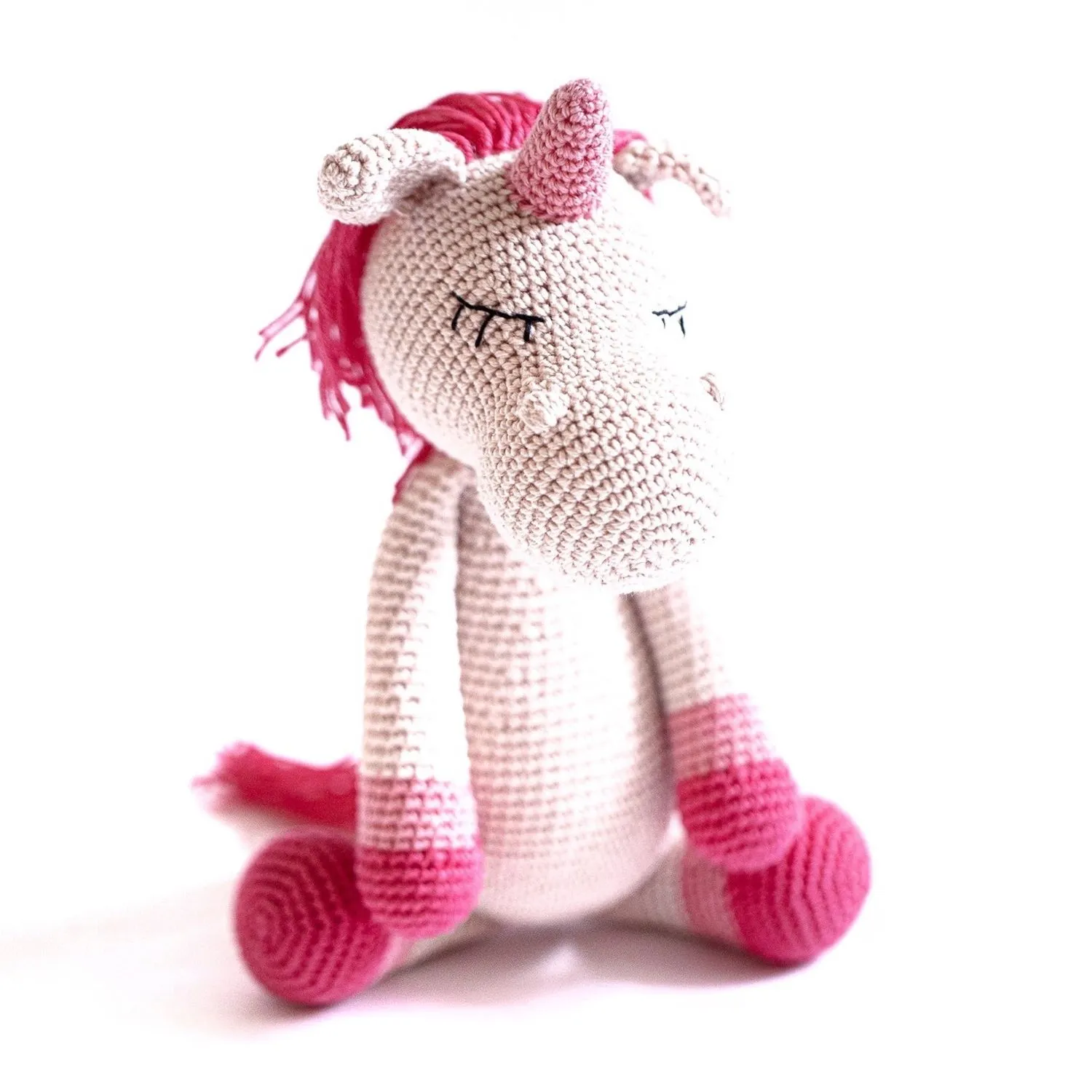 ikkvi001 Вязаная игрушка Единорог, 30 cм, цвет розовый
