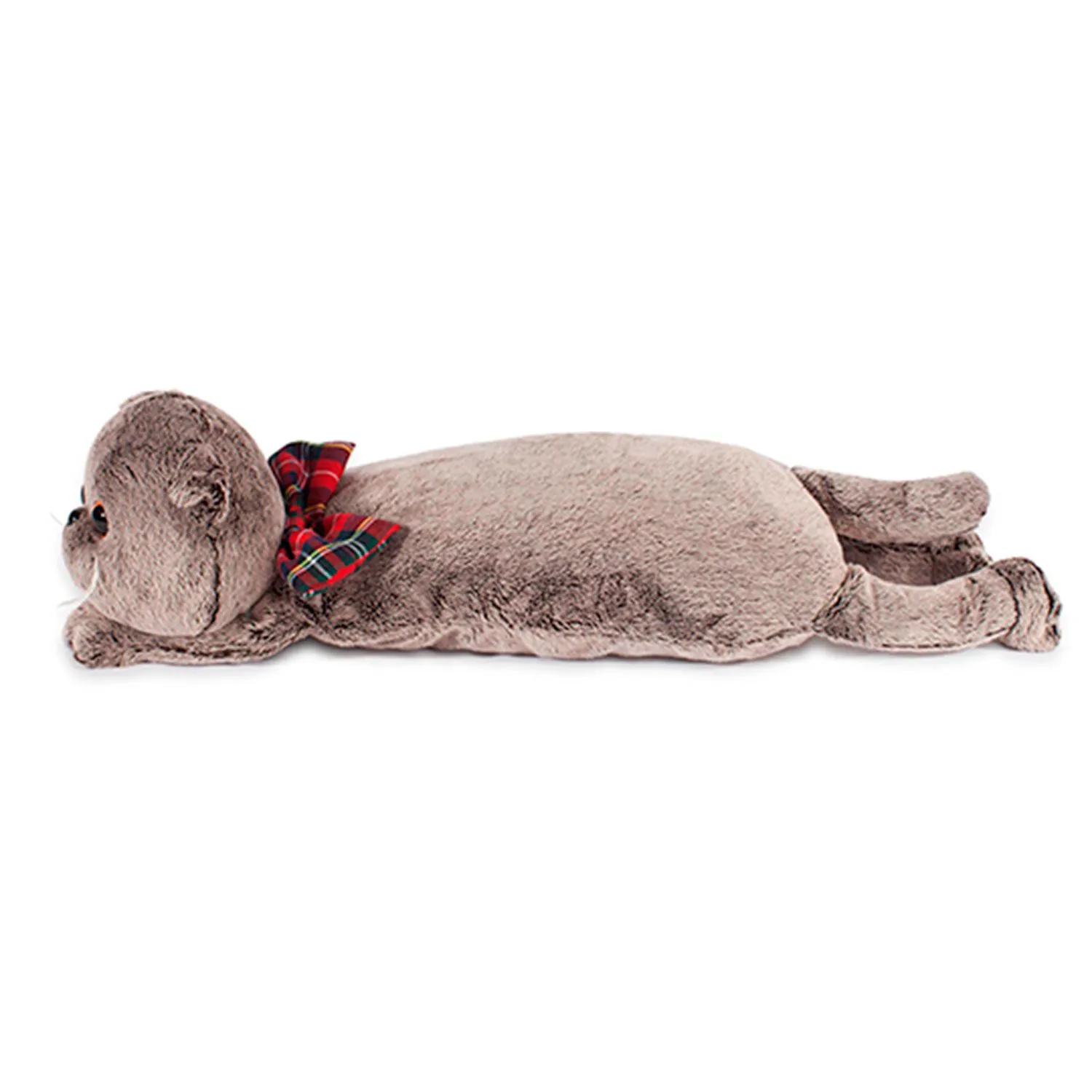 Кот-подушка со съёмным бантом, сшитым из ткани в клетку.