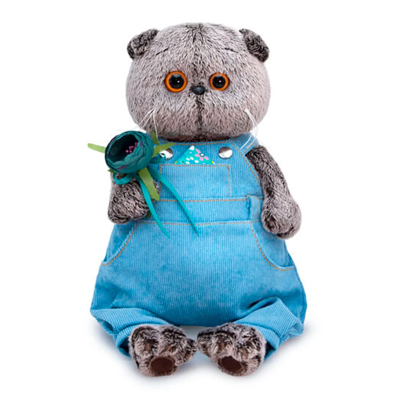 Ks22-142 Игрушка мягконабивная 'Басик в голубом комбинезоне с розочкой'