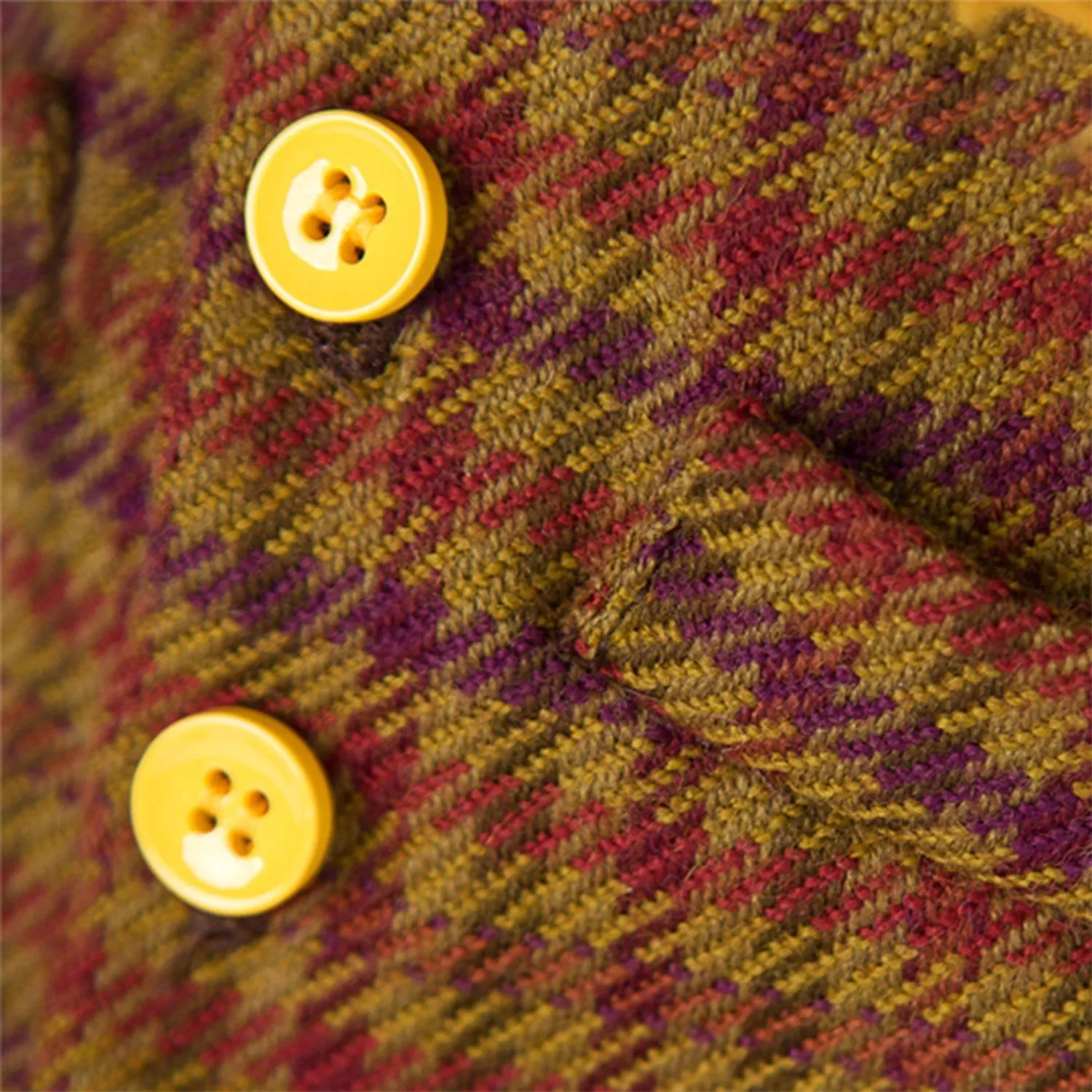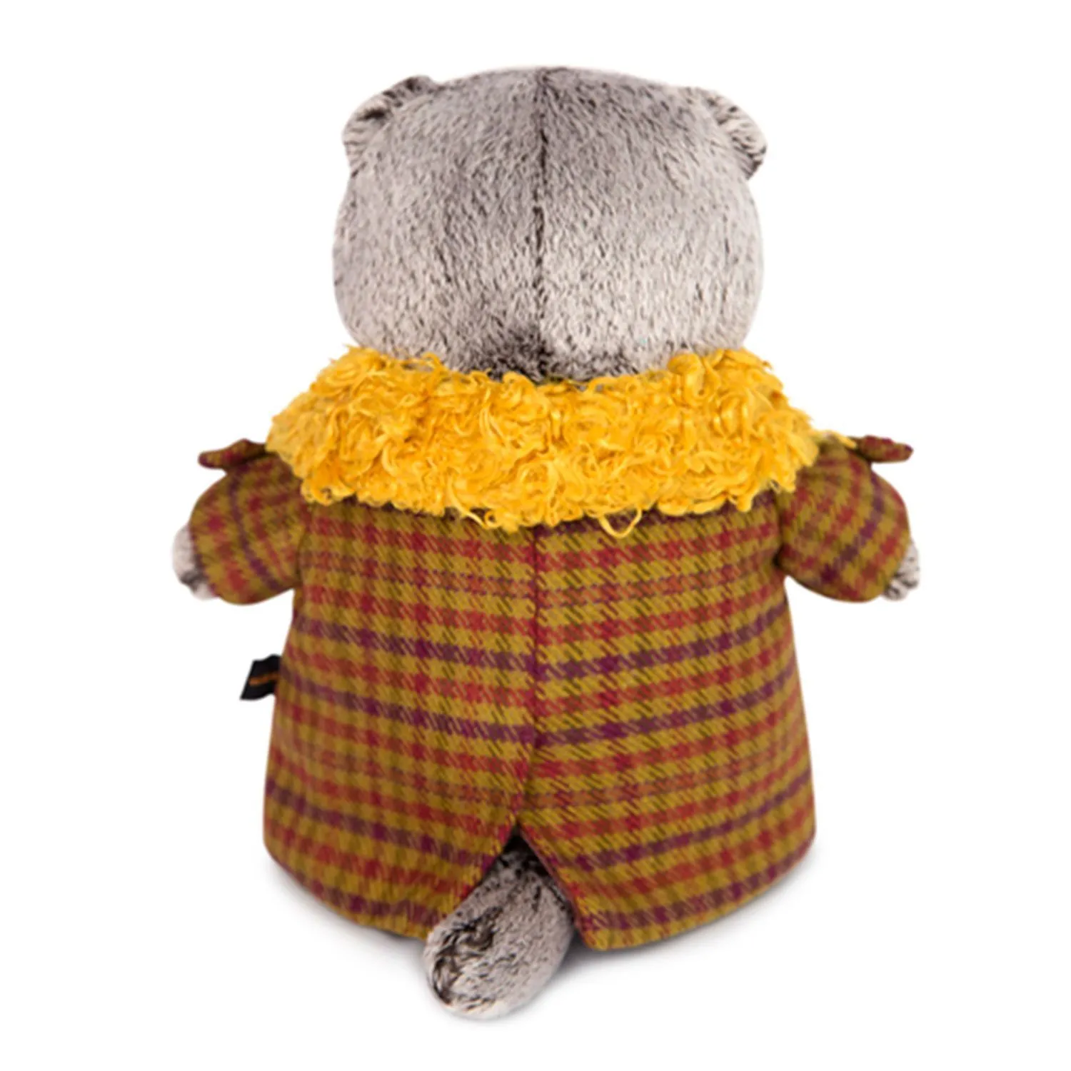 - пальтишко с меховым воротничком цвета золотой охры, кармашками-обманчиками, хлястиками на рукавах и тремя жёлтыми пуговками