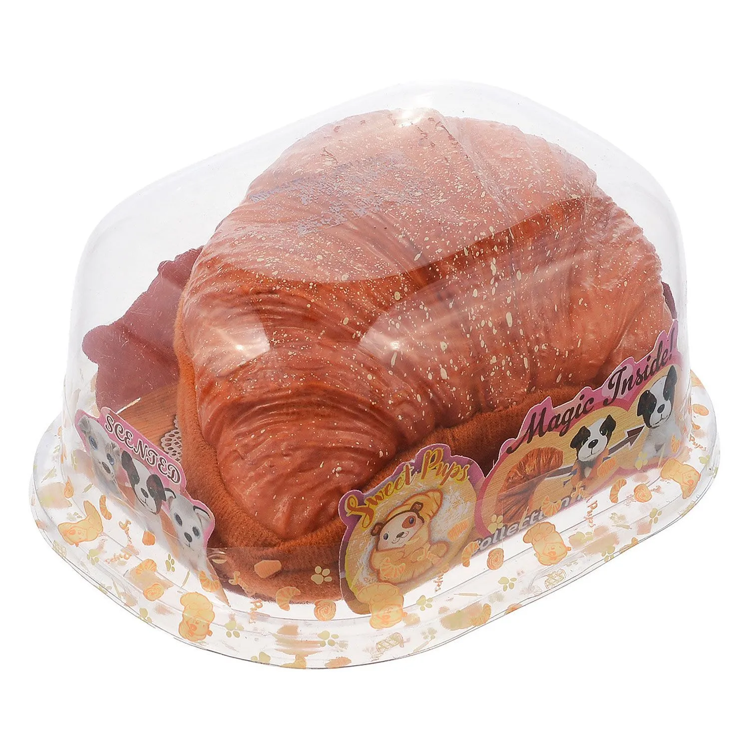 - игрушка может показаться обычной выпечкой в виде булочки, круассана или рулетика, но стоит вывернуть его наружу, как он превращается в забавного мягкого щенка