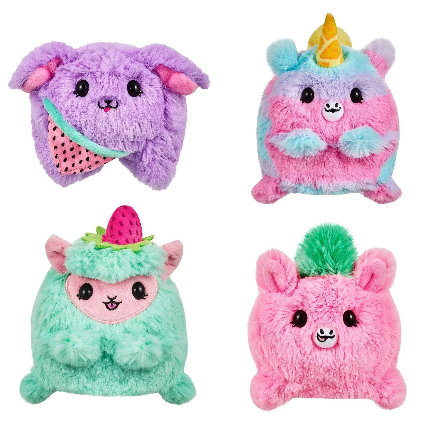 Pikmi Flips «Фруктовый праздник» представляет собой мягкую игрушку-сюрприз в виде двустороннего плюшевого ароматизированного героя-вывернушки.