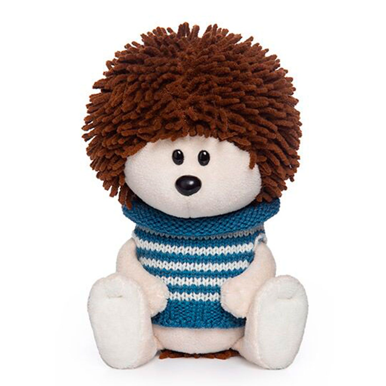 Ёжик в полосатом вязаном свитере с высоким горлышком.