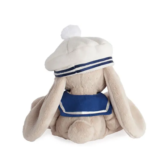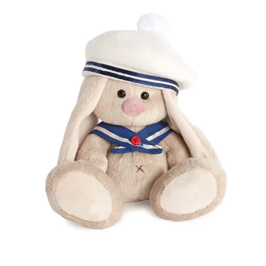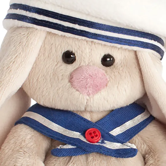Синий матросский воротничок из плотного хлопка на красной пуговке. Воротничок украшен белыми атласными полосками. В комплекте - матросский белый беретик из флиса с синими полосками и белым помпоном.
