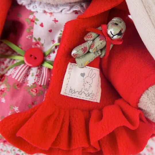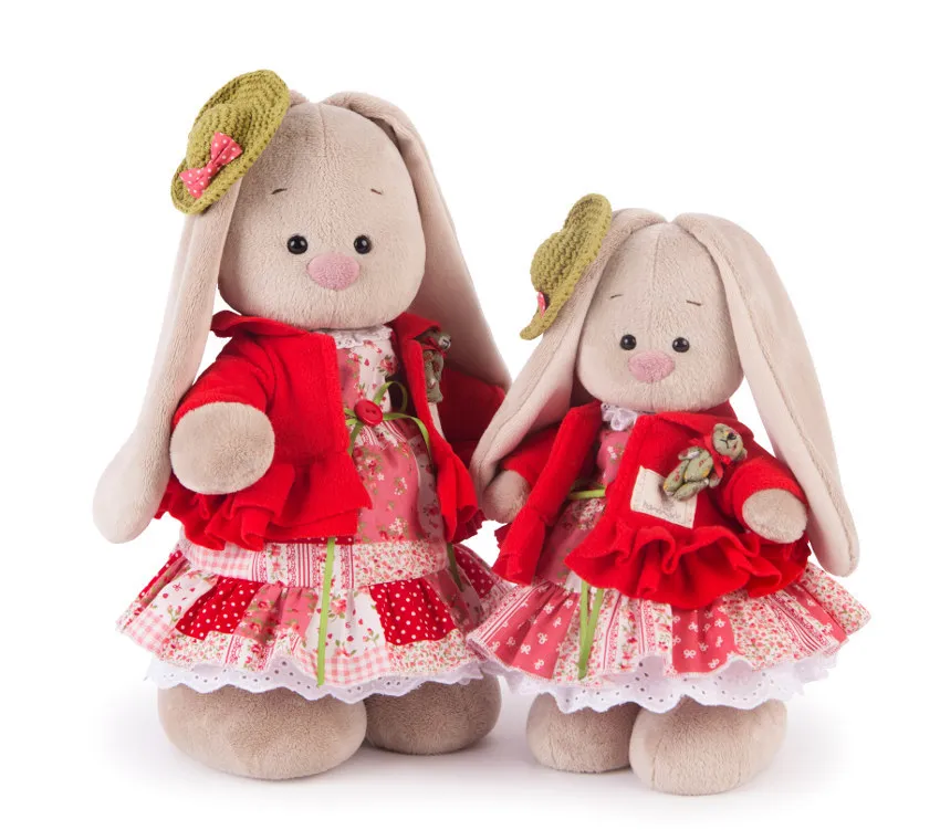 Мягкая игрушка от бренда "Зайка Ми" - очаровательный зайчонок с очень длинными ушками и добрым выражением лица. На игрушку надето красивое маково-красное платье с белыми кружевными оборками. К ушам прикреплена кокетливая шляпка. В лапке у зайки уютно разместилась маленькая игрушка. Его так и хочется взять на руки, обнять, поиграть с ним.