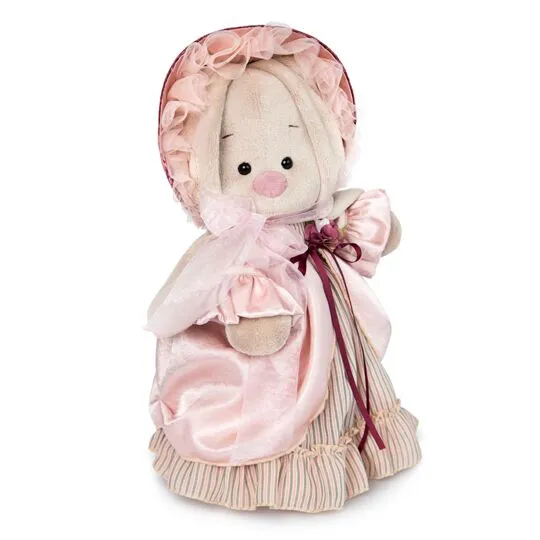 Также в комплекте бархатный капор цвета марсала на подкладе из кремового сатина, спереди украшенный оборкой из нежно-розовой сеточки.