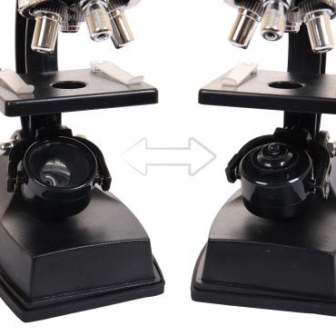 - микроскоп сделан из прочного пластика, однако по своему виду и некоторым функциям он вполне имитирует настоящий увеличительный прибор