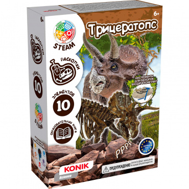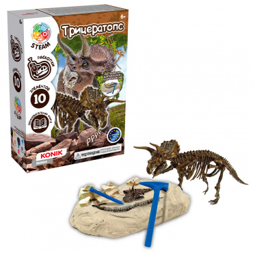 - c этим набором дети смогут самостоятельно раскопать и собрать фигурку трицератопса