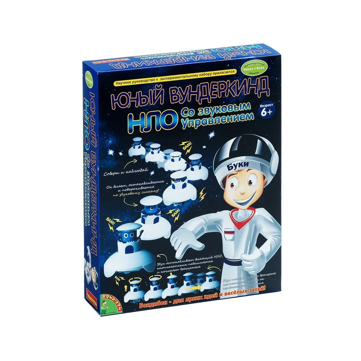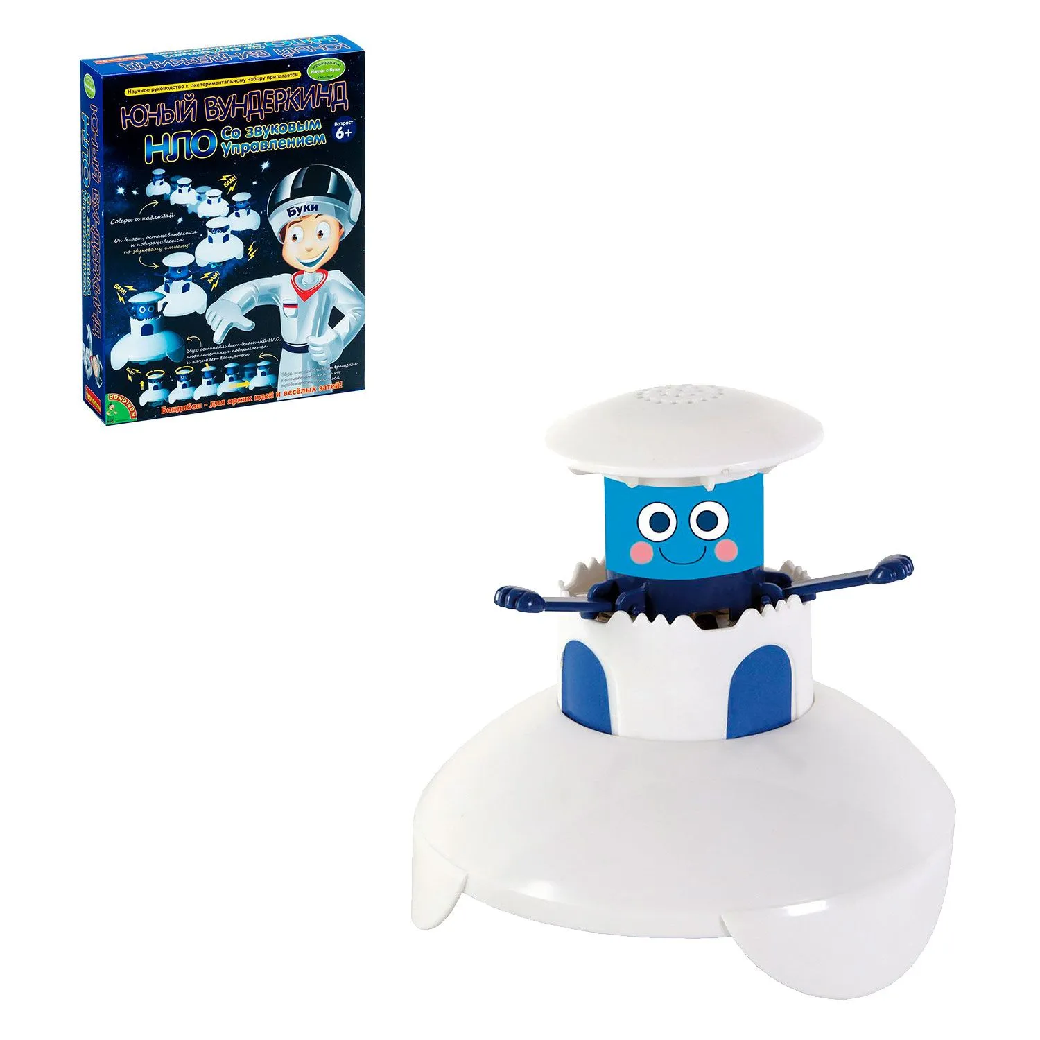 Набор НЛО предлагает ребенку собрать модель летающей тарелки, которая будет слушать звуковые команды хозяина и реагировать на них движениями в различных направлениях.
