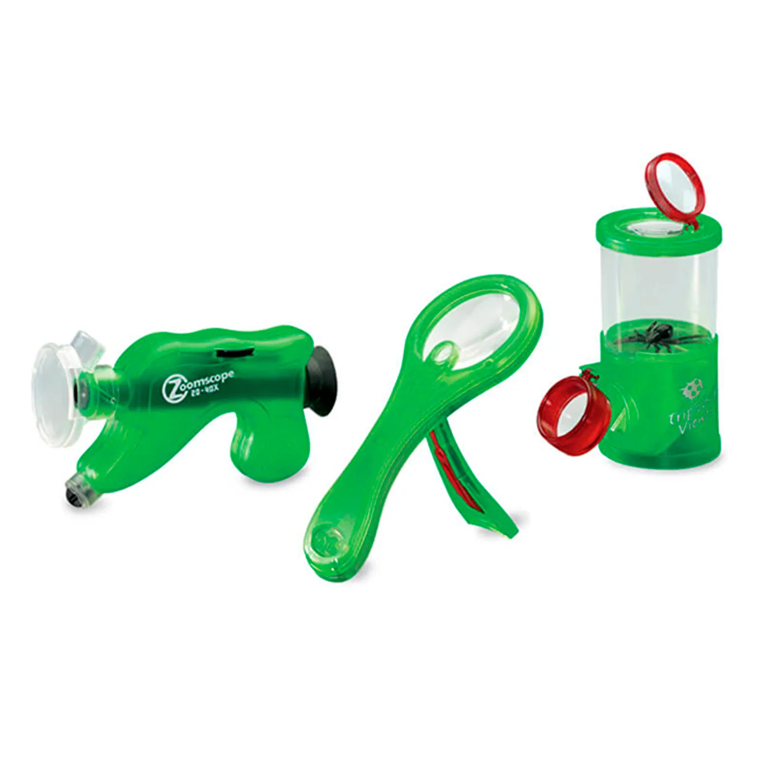 Большой и многофункциональный набор из 3 оптических приборов для изучения насекомых и растений.