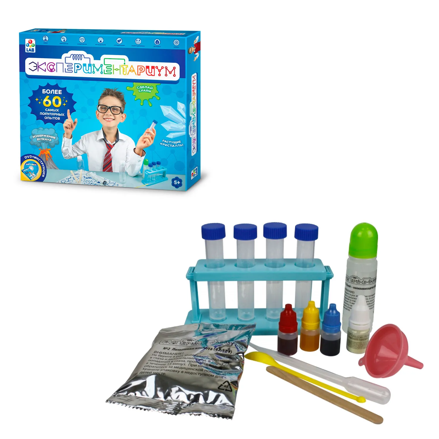 Этот уникальный набор включает 65 удивительных опытов из разных наук: аэродинамики, вулканологии, ботаники, кристаллографии, науки о полимерах и многие другое.