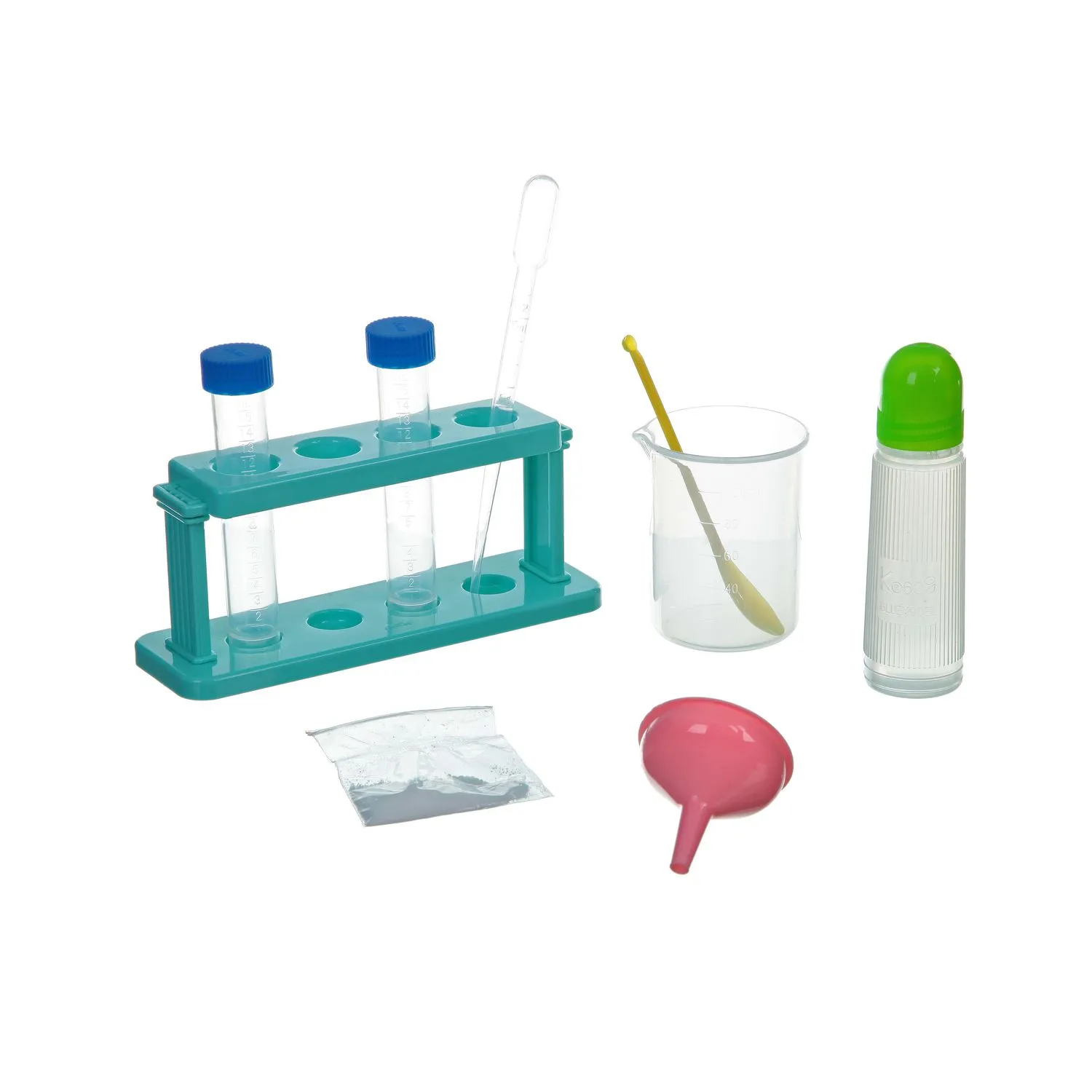 - в настоящем наборе представлены пять различных экспериментов с использованием пробирок, стаканчика и иного оборудования, которое часто применяется в области химии