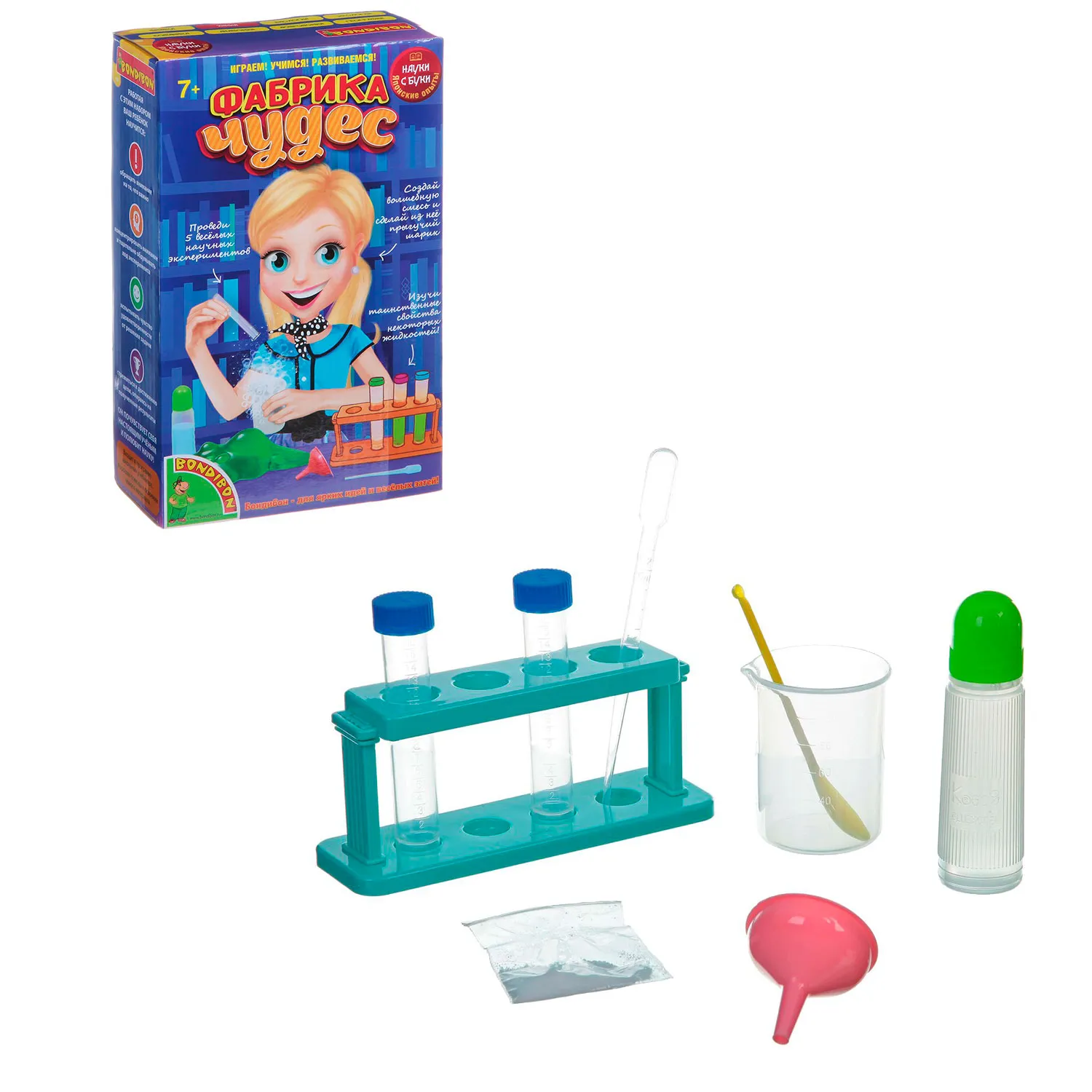 - ребенок с помощью этого набора сможет наглядно изучить различные жидкости и вещества, а также провести эксперименты с изменением формы вещества, сможет приготовить сыр и сделать игрушку – прыгающий мячик