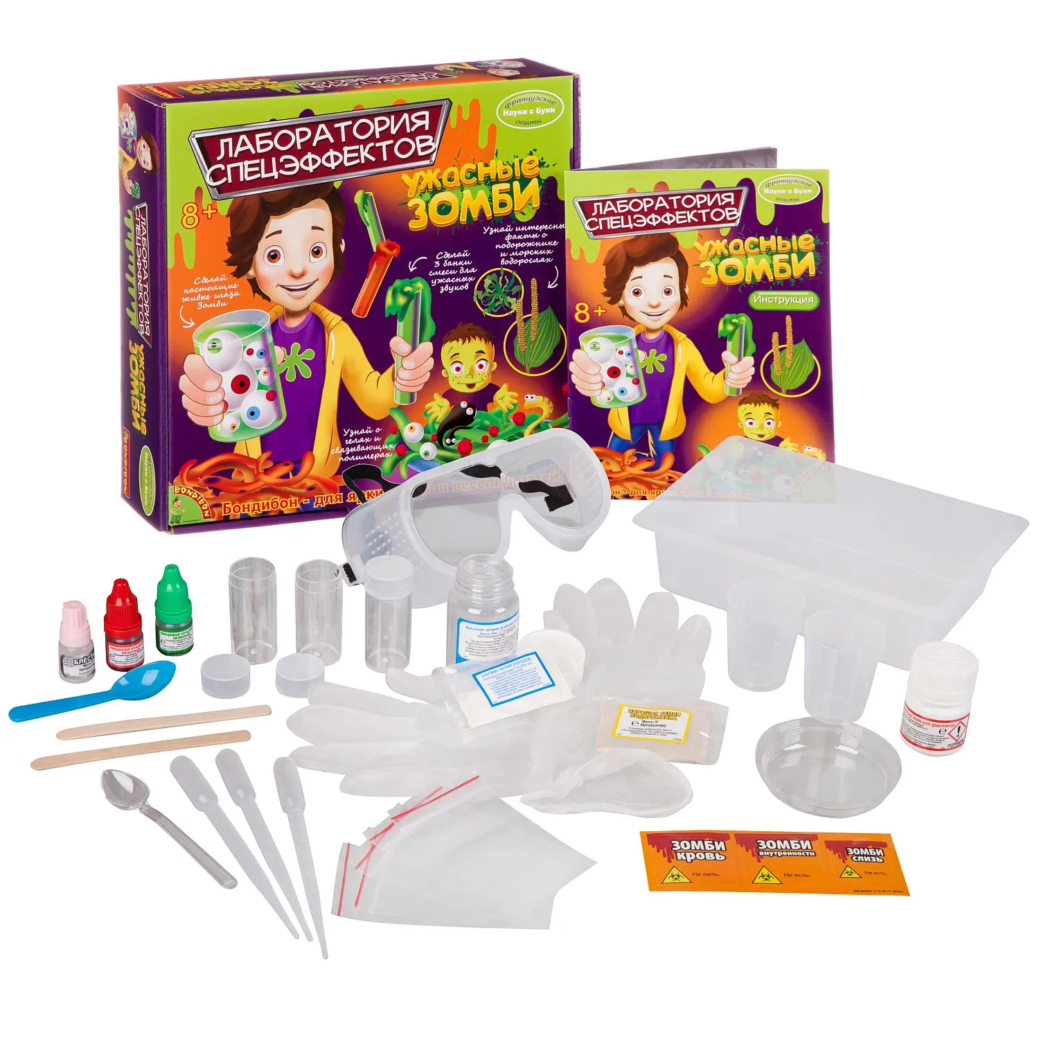 Если ты любишь книжки-страшилки и разные ужастики, то набор Лаборатория спецэффектов зомби создан для тебя Проведи полимерно-гелевые опыты и сделай смесь, для ужасающих звуков зомби, создай глаза зомби и многие другие шалости.