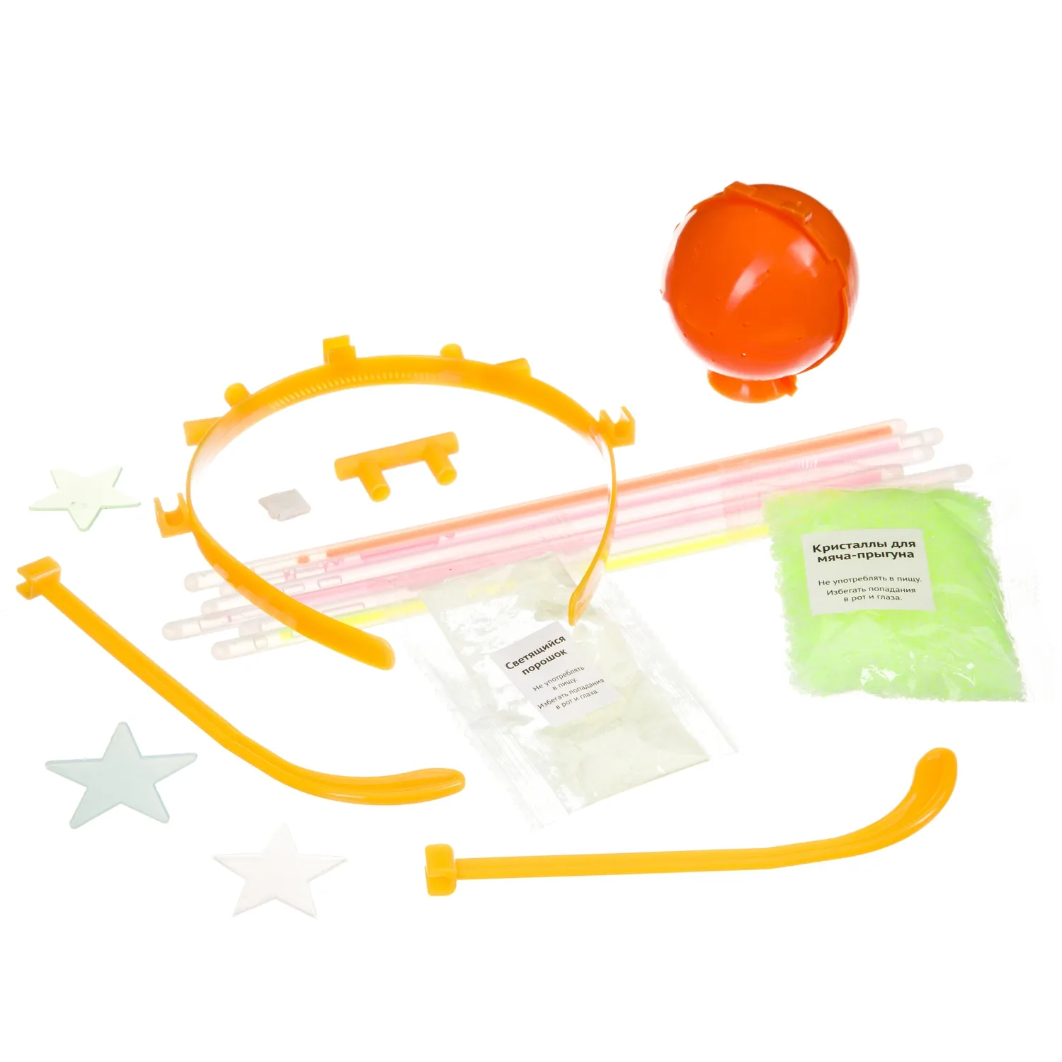 - с этим набором можно сделать забавные светящиеся очки и ободок, проделать эксперименты со светящимися палочками, создать светящийся мяч-прыгун, узнать, что такое люминесценция и хемилюминесценция, познакомиться с особыми кристаллами и энергией механического воздействия