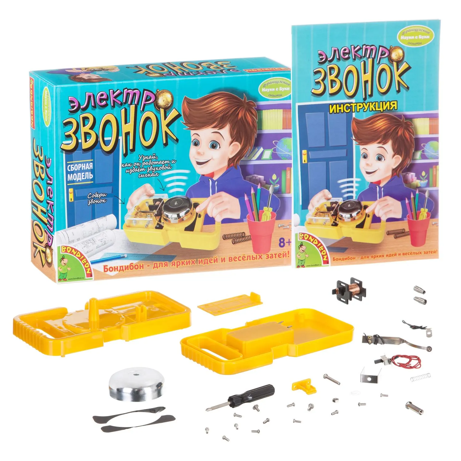 С помощью этого набора ребята смогут собрать действующую модель электрического звонка, то есть такого звонка, который работает при помощи электромагнита.