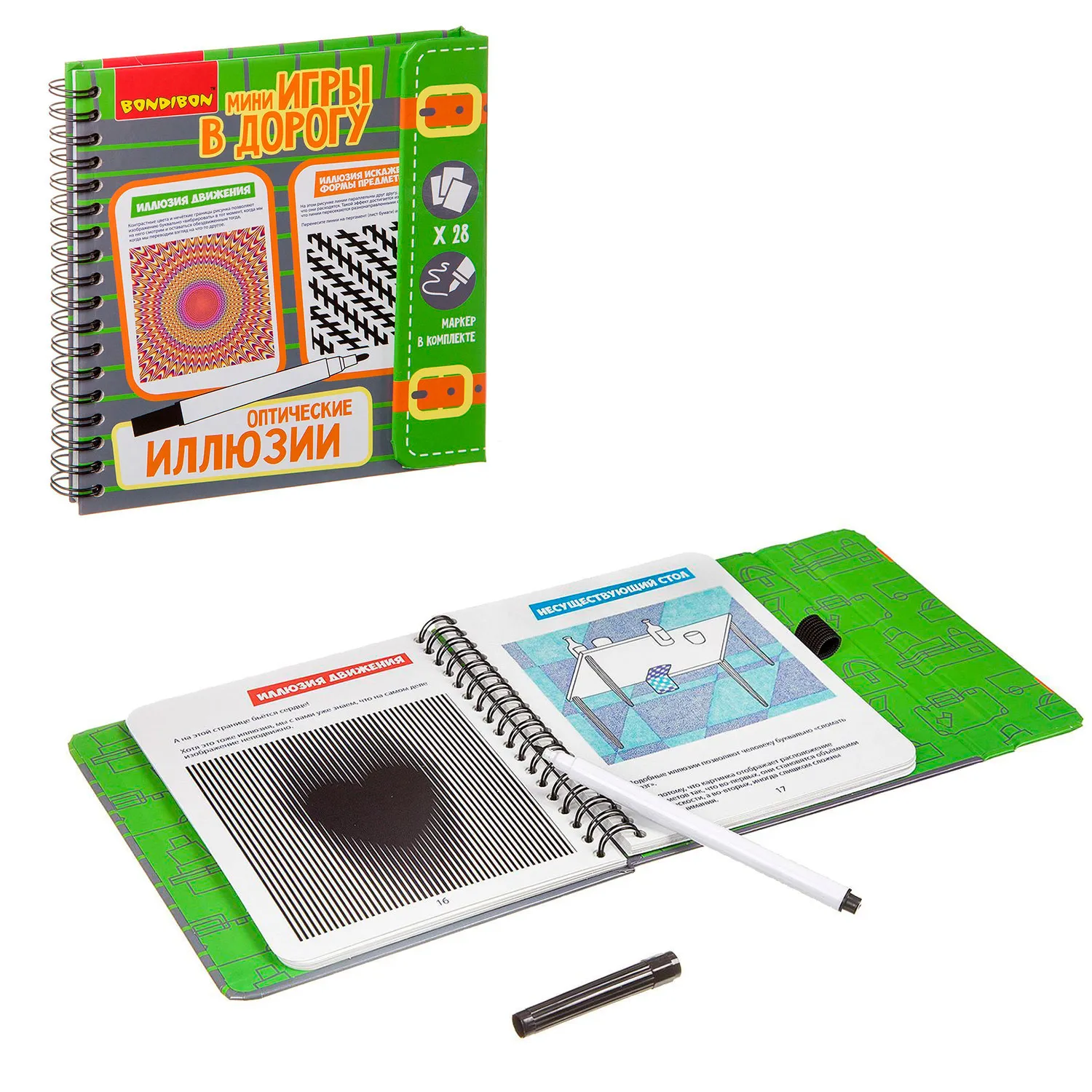 - что такое обман зрения? как нарисовать предмет, которого не существует в природе? что сильнее - левое или правое полушарие мозга? ответы на эти вопросы, а также движущиеся иллюзии, иллюзии 3D эффекта, цветового искажения, искажения форм и много интересных фактов ждет Вас на страницах этого набора