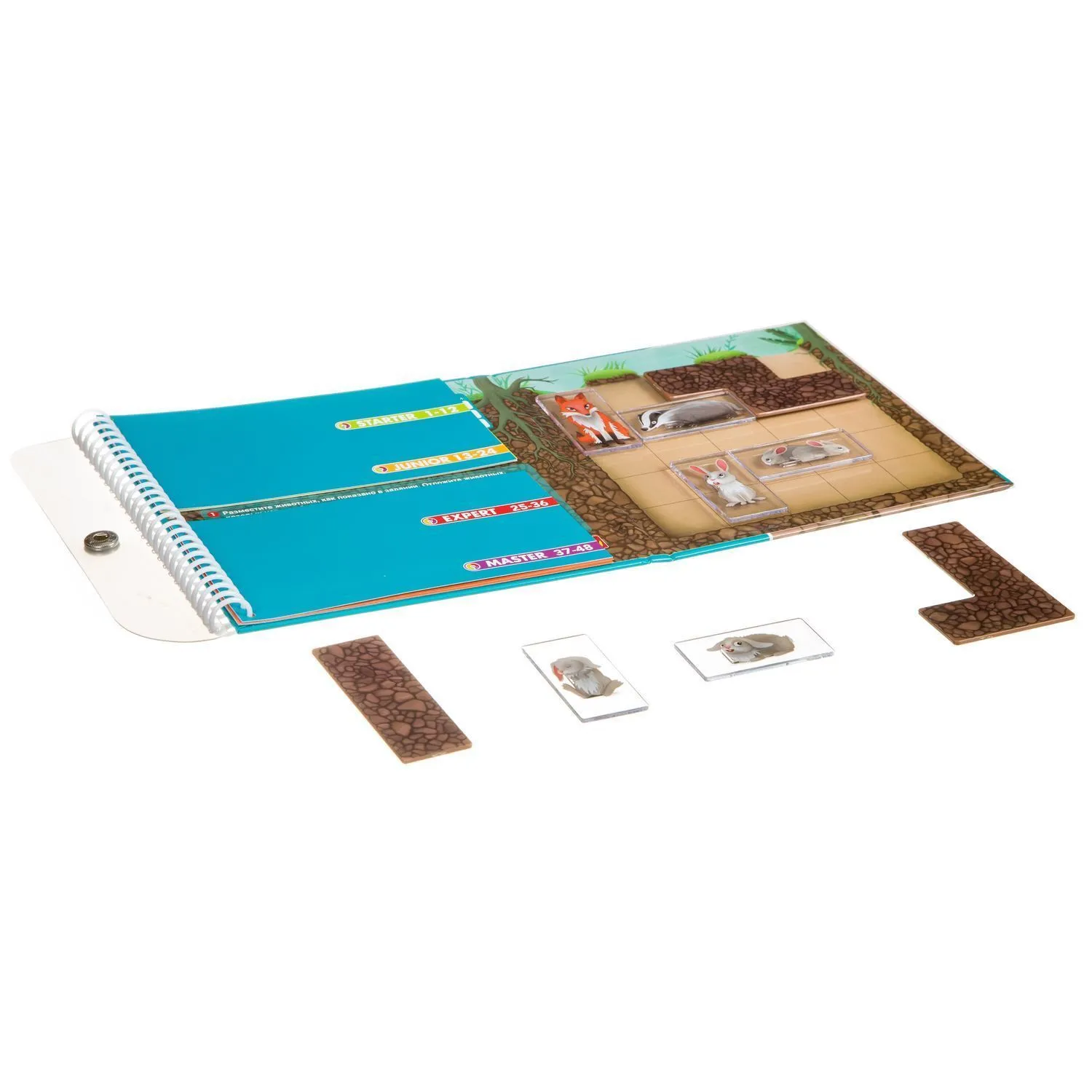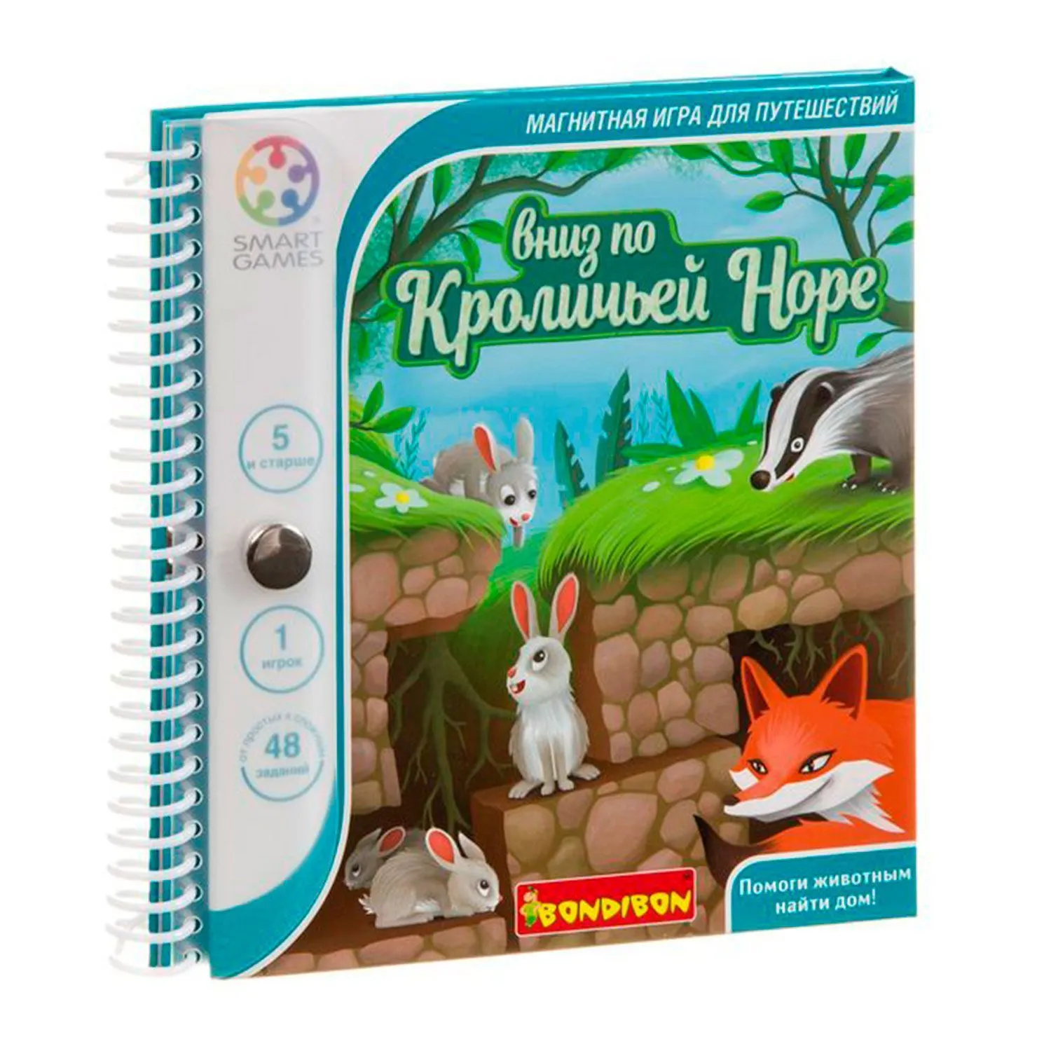 Вниз по кроличьей норе - это увлекательная игра для путешествий с магнитными деталями и 48 заданиями разных уровней сложности.