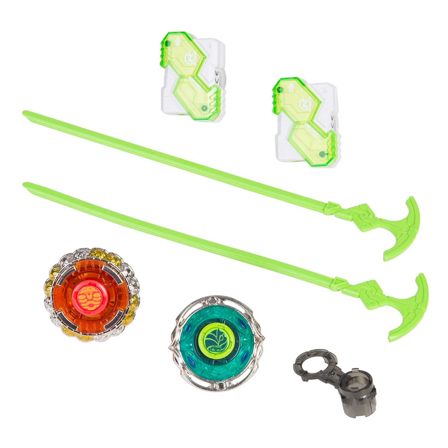 В каждый комплект серии входят два волчка, которые способны объединяться в один.