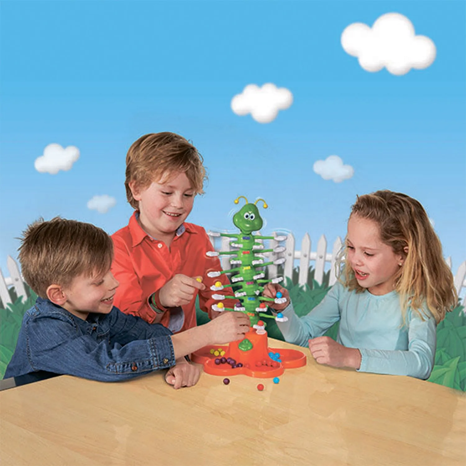 - нужно раскладывать шарики на лапках гусеницы и постараться первым дойти до вершины