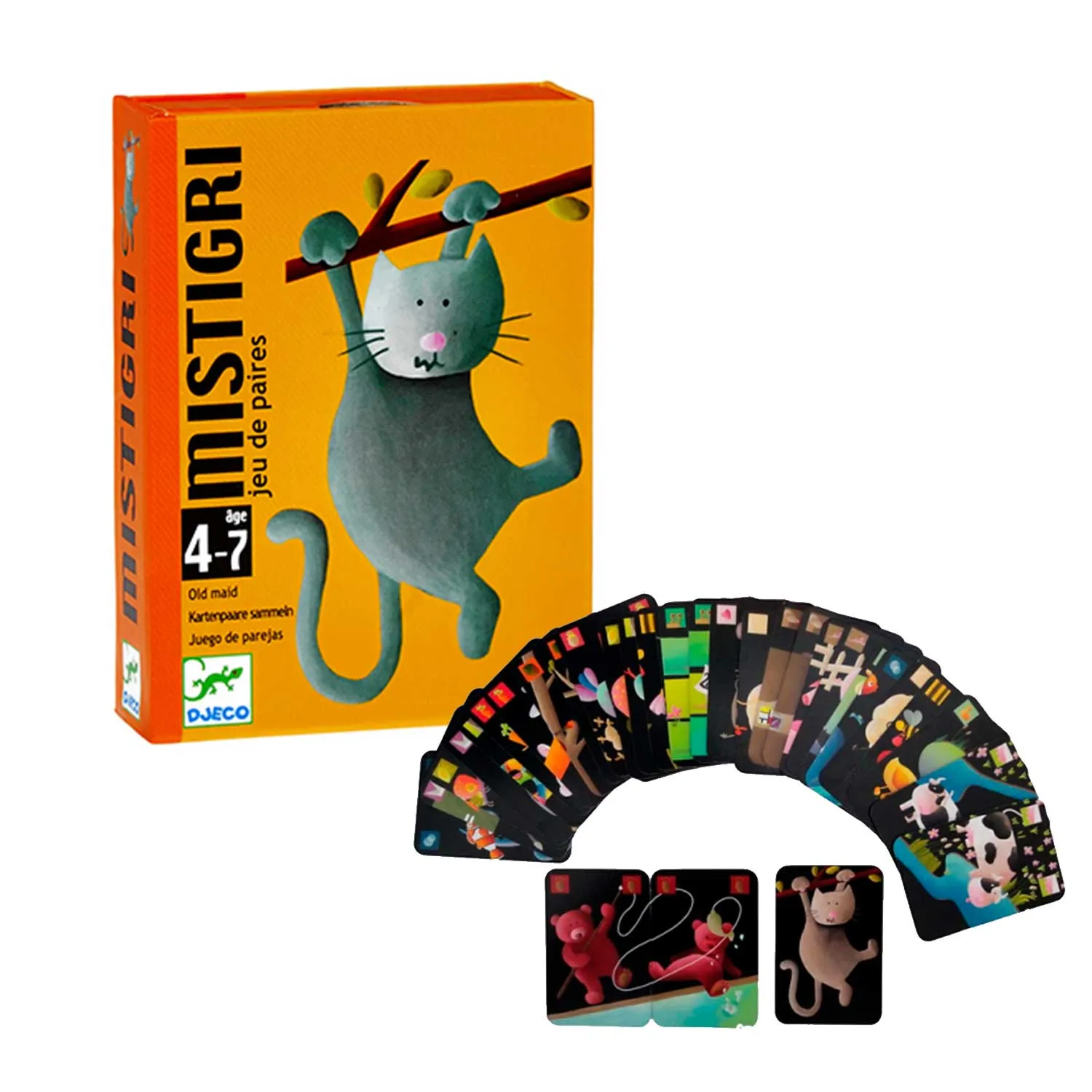 - но среди всех карт есть одна, не имеющая пары «Мистигри» с портретом забавного кота, вот именно ее и надо избегать игрокам