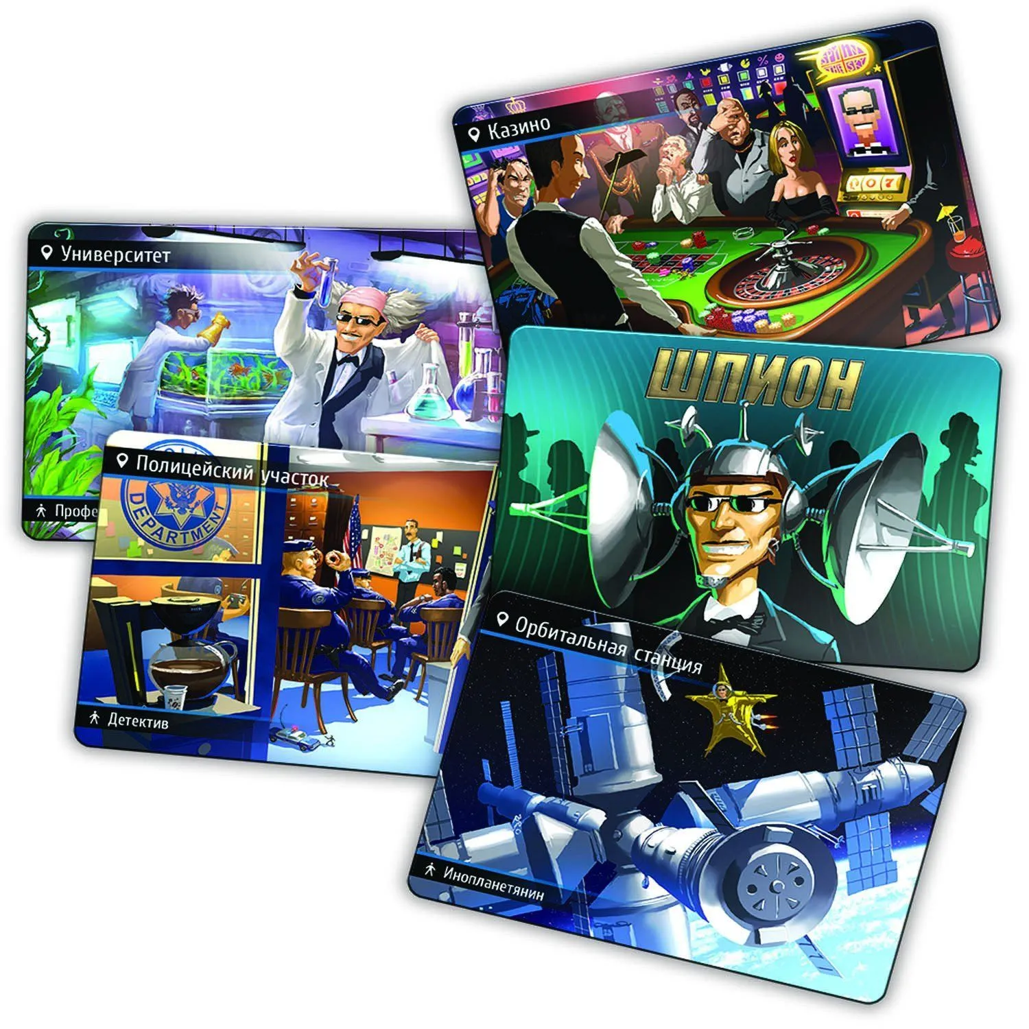 - участникам партии отводится несколько минут, чтобы вычислить шпиона в родных стенах в разных локациях.
