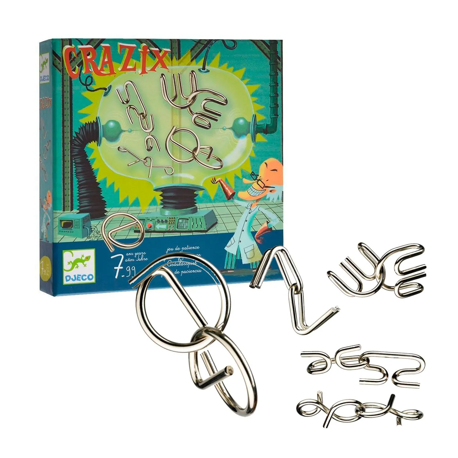 Металлические головоломки «Crazix» от французской компании «Djeco» - отличный подарок младшему школьнику, который сможет развлечься решением забавных головоломок на переменке в школе, показывая «фокус» своим одноклассникам».
