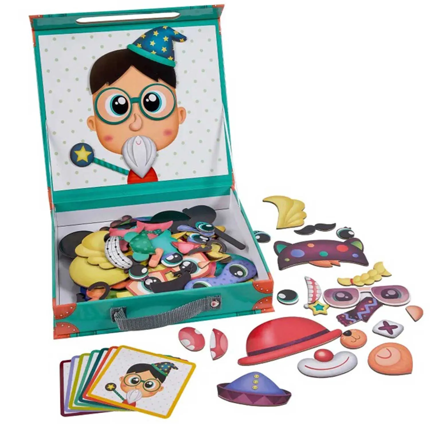 - c помощью магнитных элементов этого набора ребёнок может создавать десятки забавных и выразительных лиц
