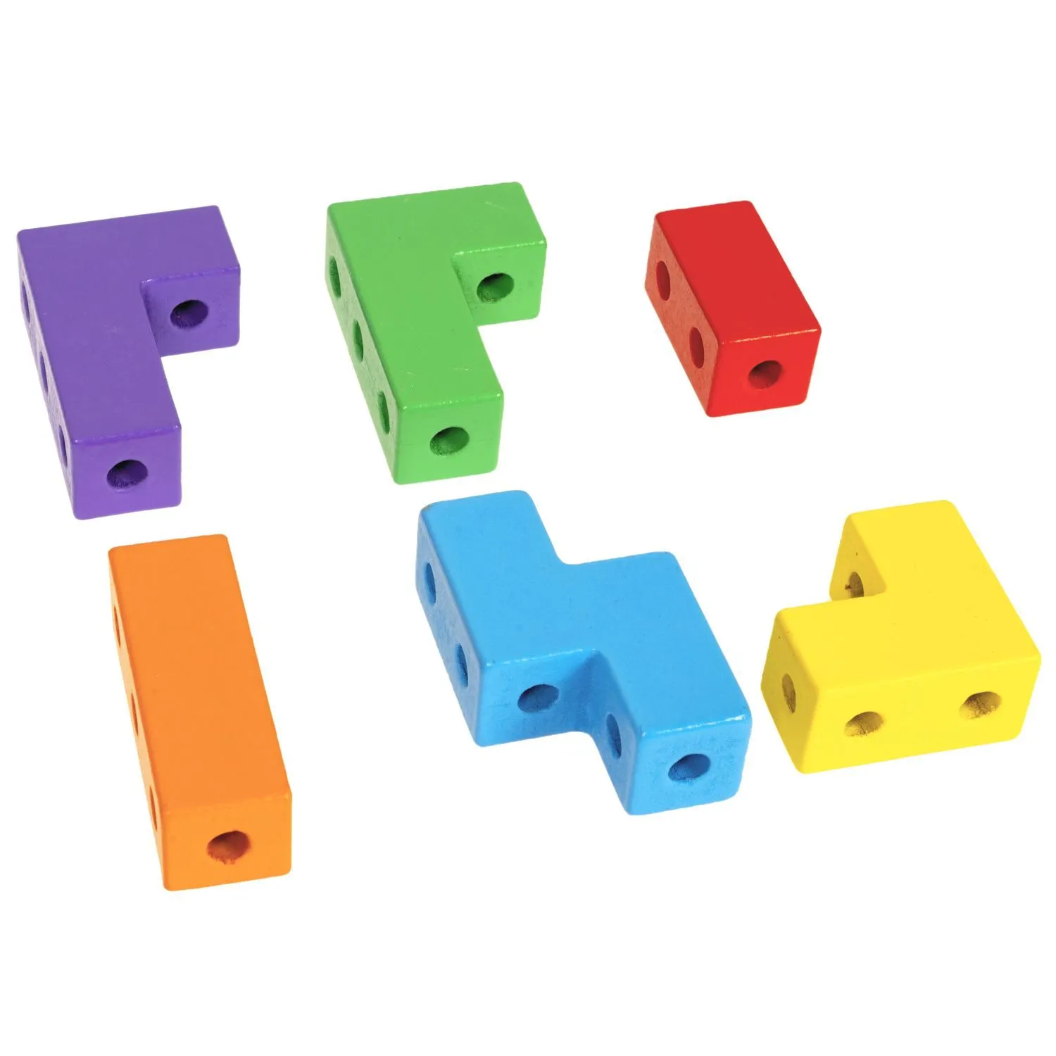 - повторите комбинацию из фигур из задания, насаживая детали на деревянные колышки